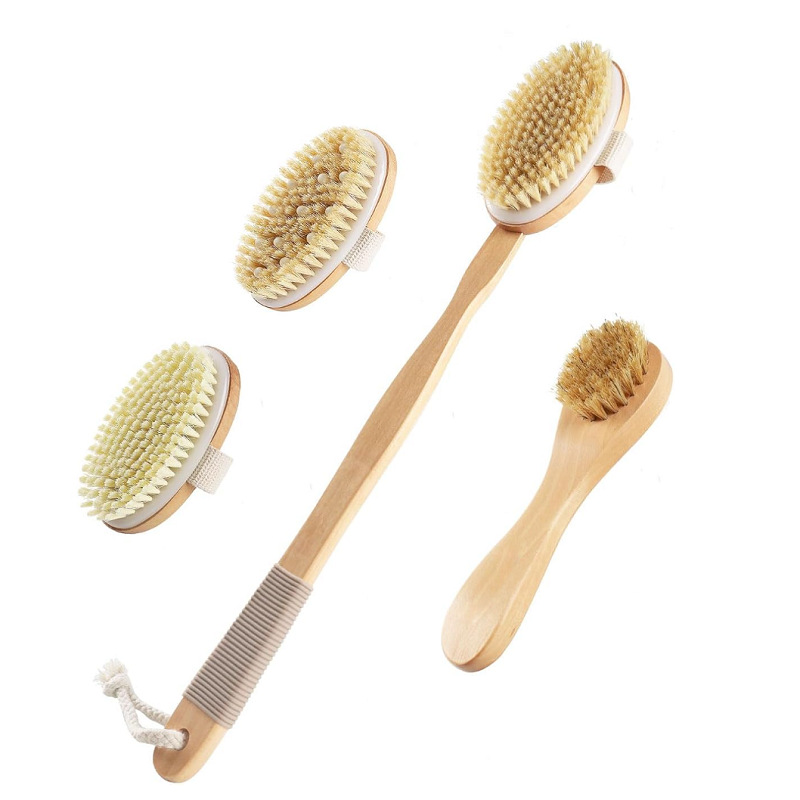 アマゾンの爆発豚のたてがみボディブラシセット角質ボディドライブラシ顔マッサージブラシ死んだ皮火山石