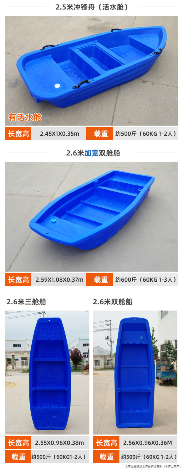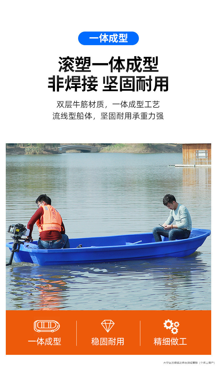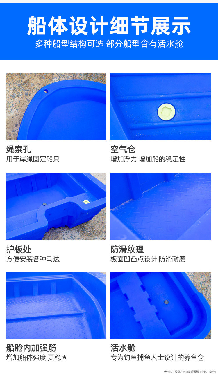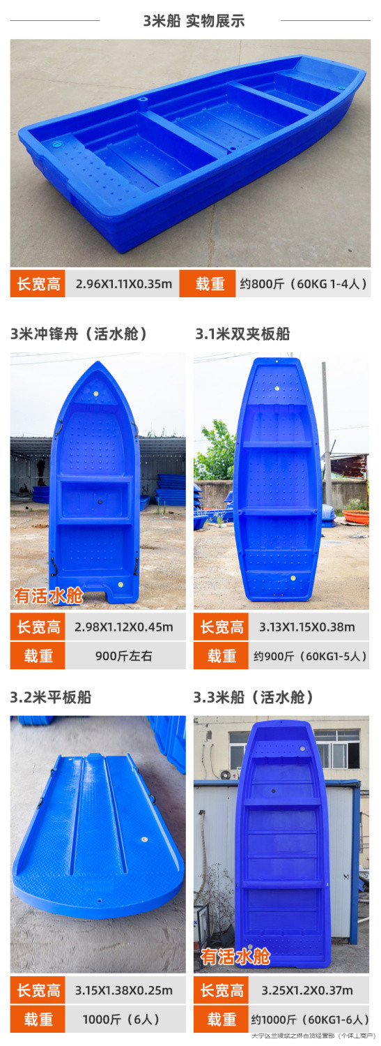 塑料船加厚渔船捕鱼小船钓鱼船牛筋冲锋舟双层河道保洁船橡批发