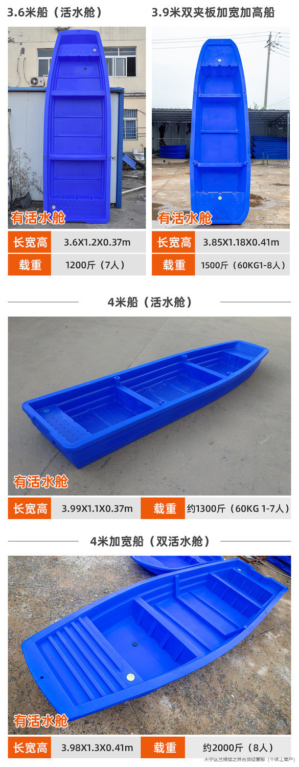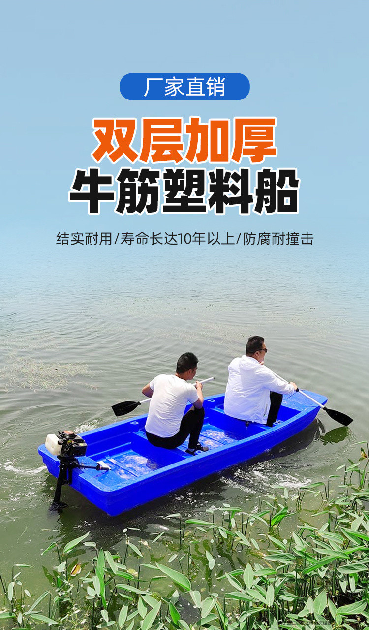 双层加厚牛筋塑料船渔船钓鱼下网养殖捕鱼小船河道保洁船塑胶船艇