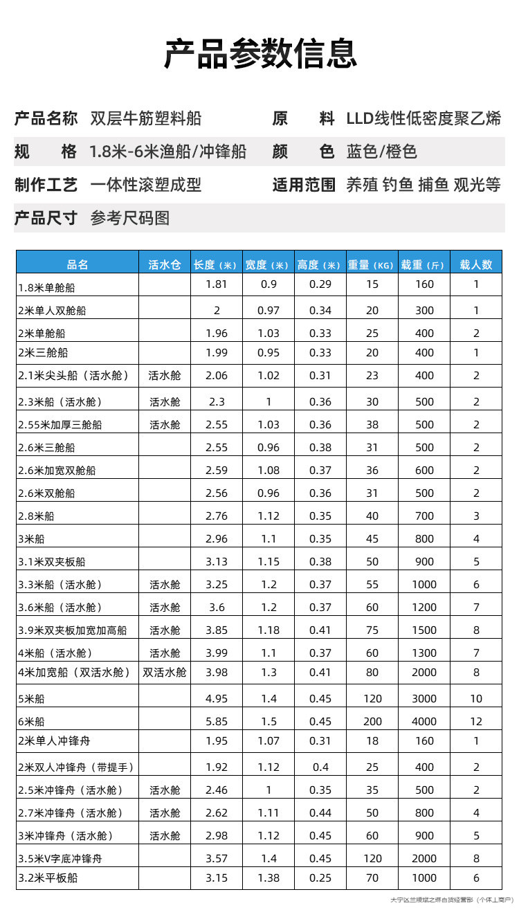 PE牛津塑料船 双层船 养殖船 打捞下网船冲锋舟加厚小船观光船
