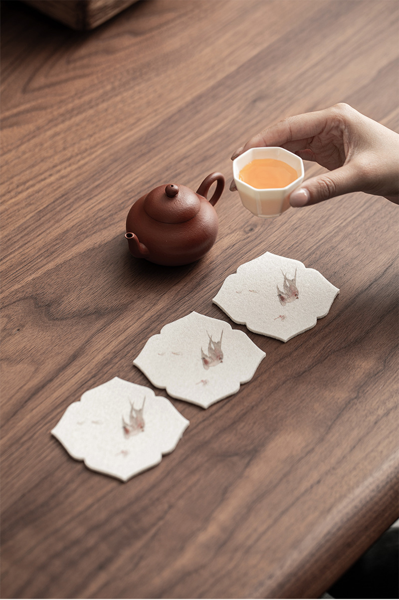 手染め六角コースター禅意茶杯托布芸茶マット茶卓断熱壺承壺マット茶道部品