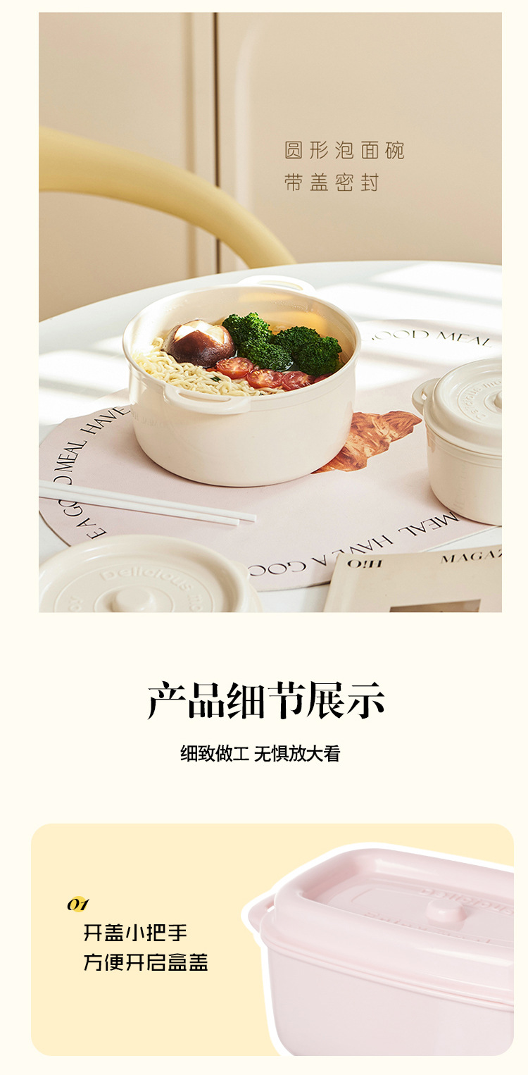 家庭用サラダボウル、学生用弁当箱、電子レンジ対応食品グレード弁当箱、エナメル風鮮度保持容器