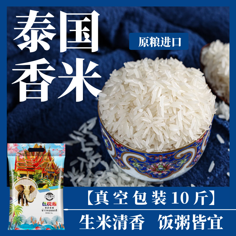 泰国茉莉香米原粮进口大米猫牙米新米煲仔饭炒饭长粒香米10斤包装