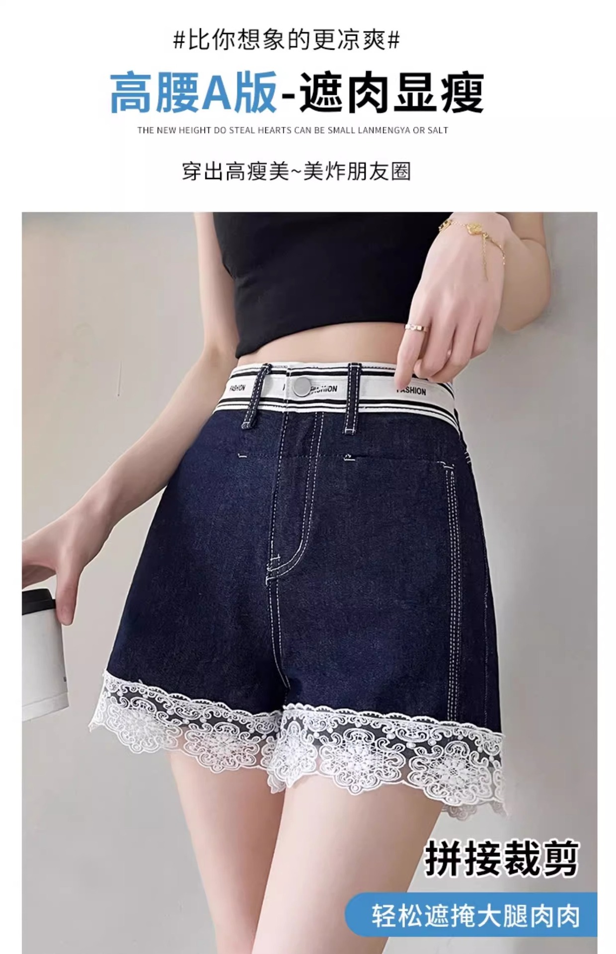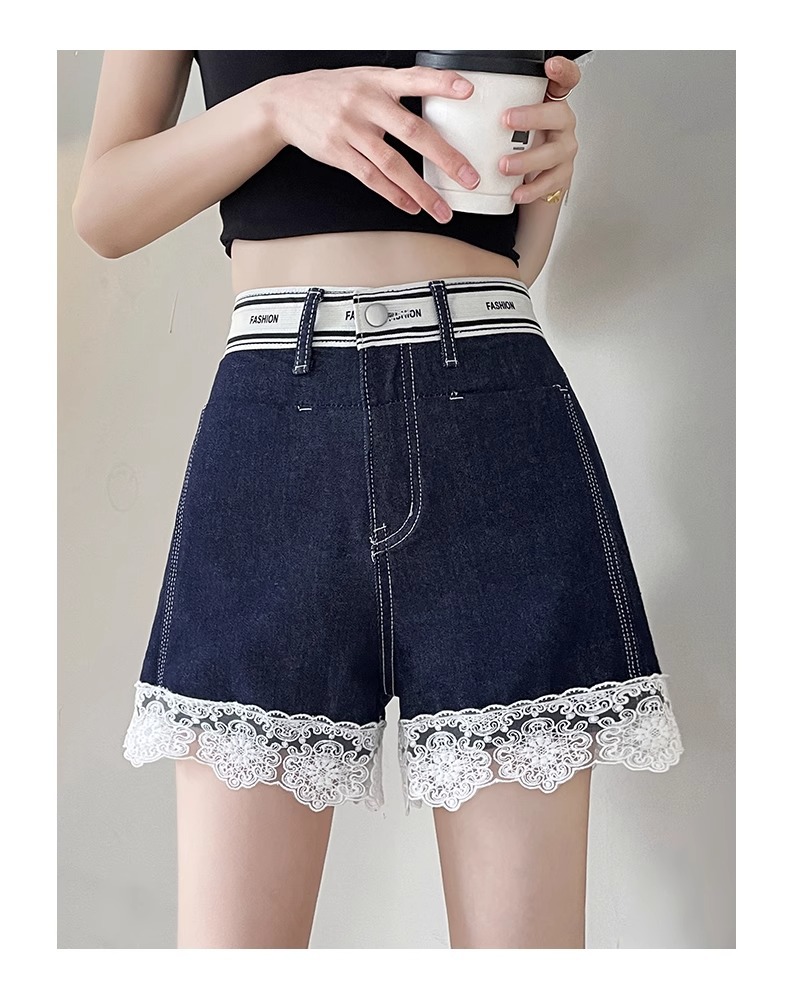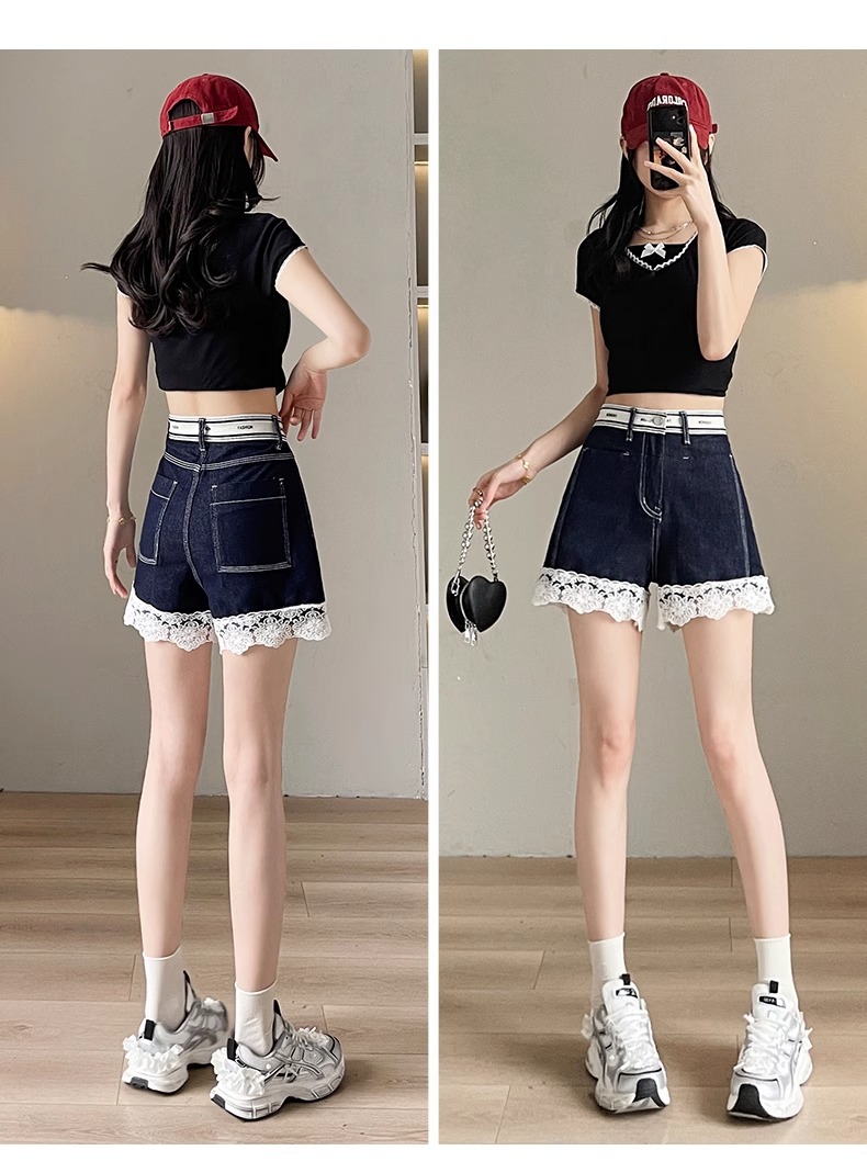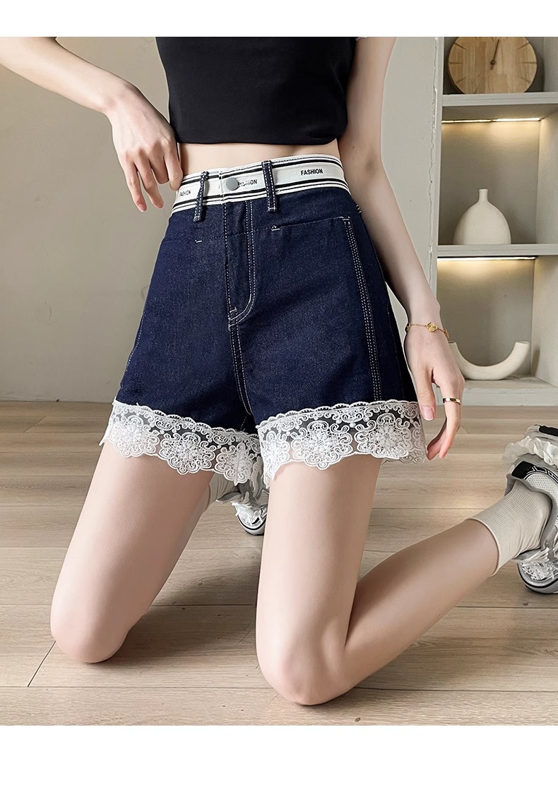 レースデニムショートパンツ女性の夏薄い 2025 新しいスリムファッションルーズデザインショートパンツ