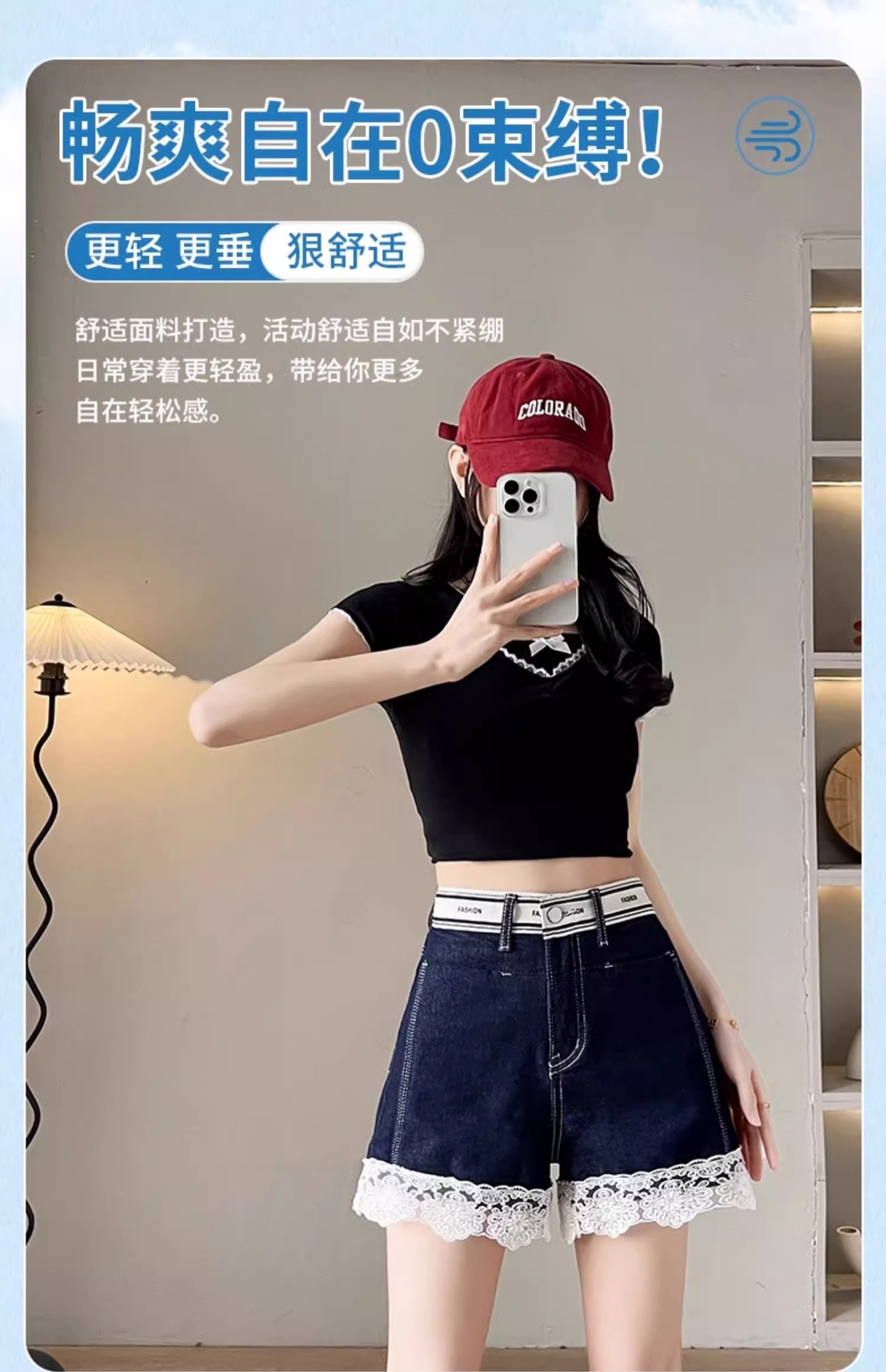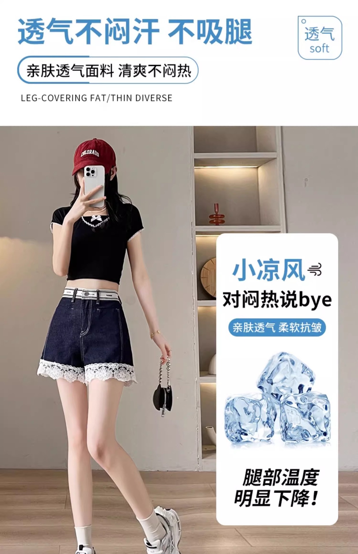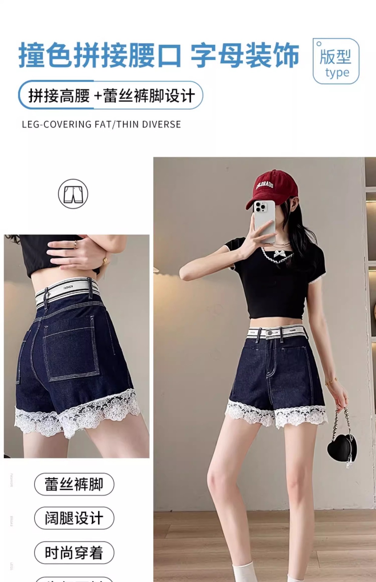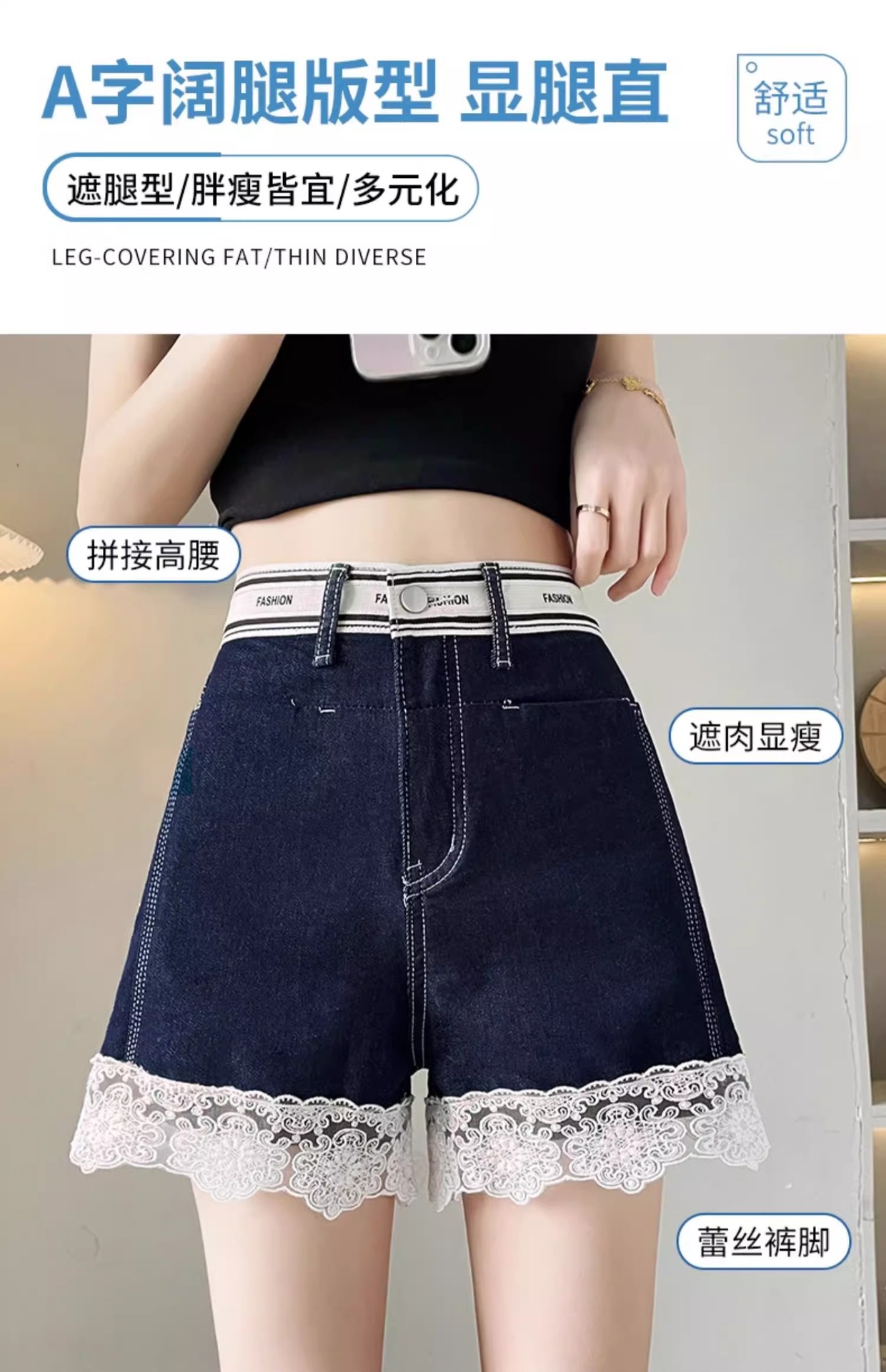 レースデニムショートパンツ女性の夏薄い 2025 新しいスリムファッションルーズデザインショートパンツ