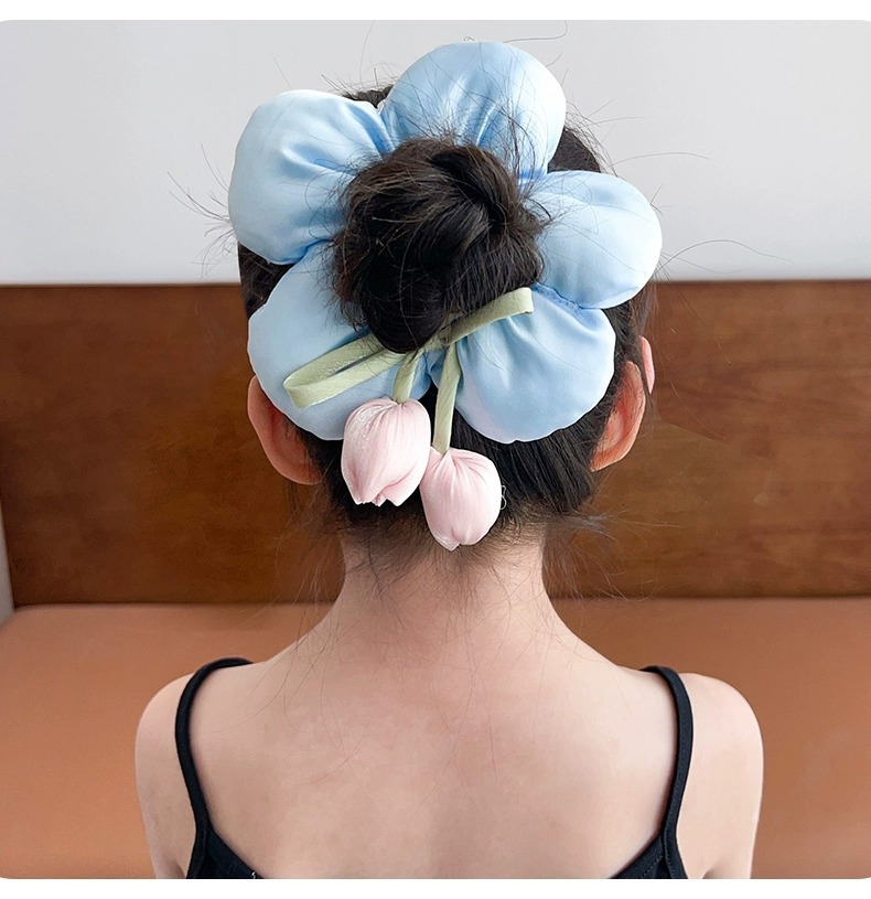 子供のチューリップの花の大腸の髪輪2025新型の女の子の団子の髪ひもの韓国系のリボンの髪飾り