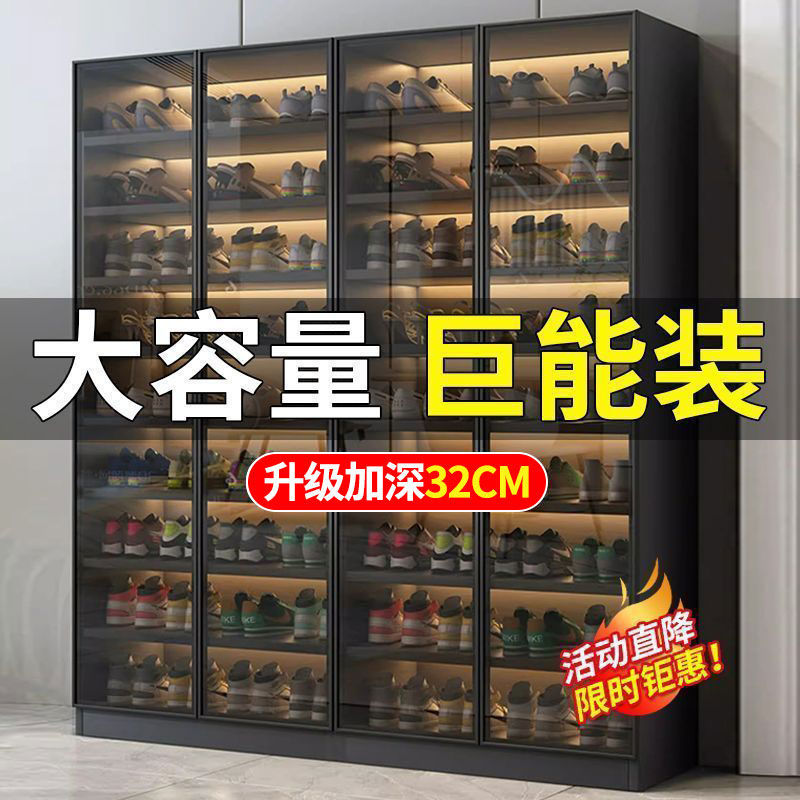 透明なガラスの靴キャビネット、家庭用ハイヒールの靴キャビネット、大容量の収納、モダンな玄関バルコニー収納キャビネット