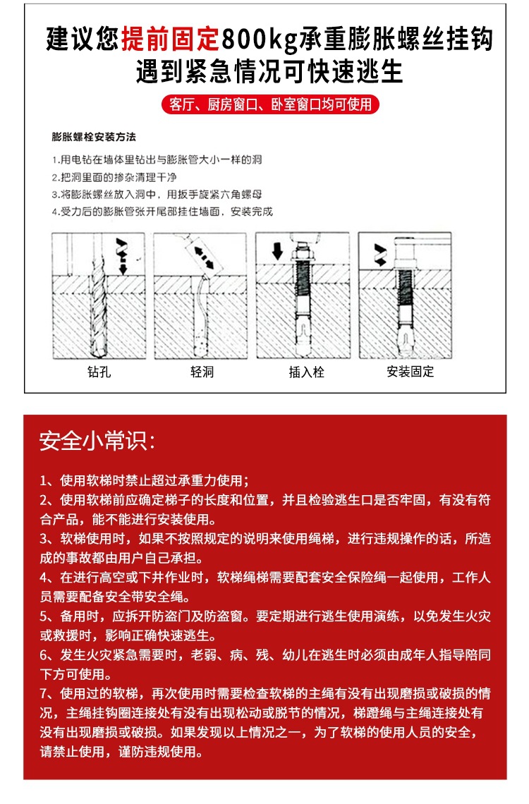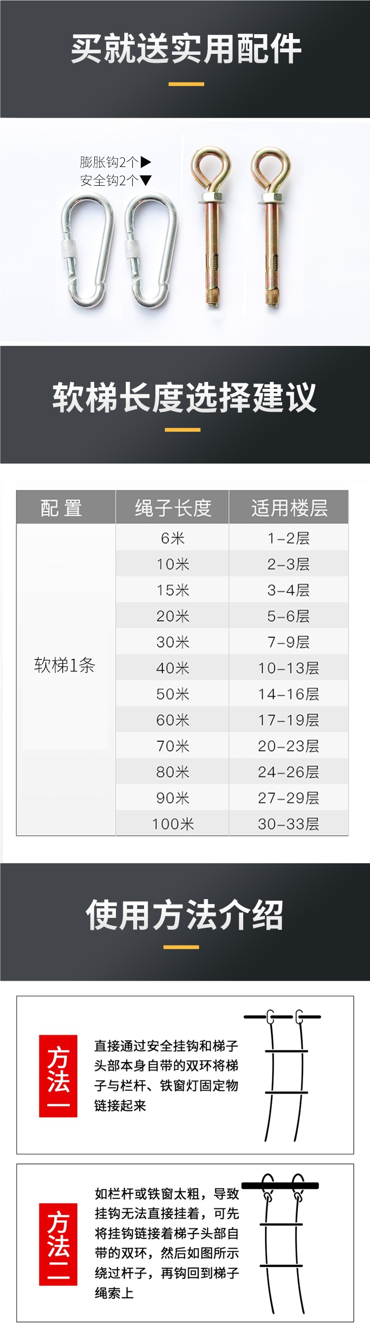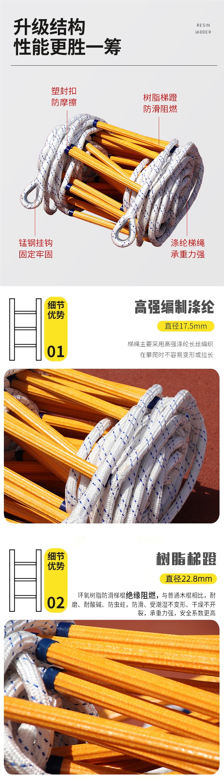 ソフトはしごロープはしごソフトはしご 5.1m 高層ビル脱出クライミング消防特別救助はしご滑り止め樹脂ソフトはしご