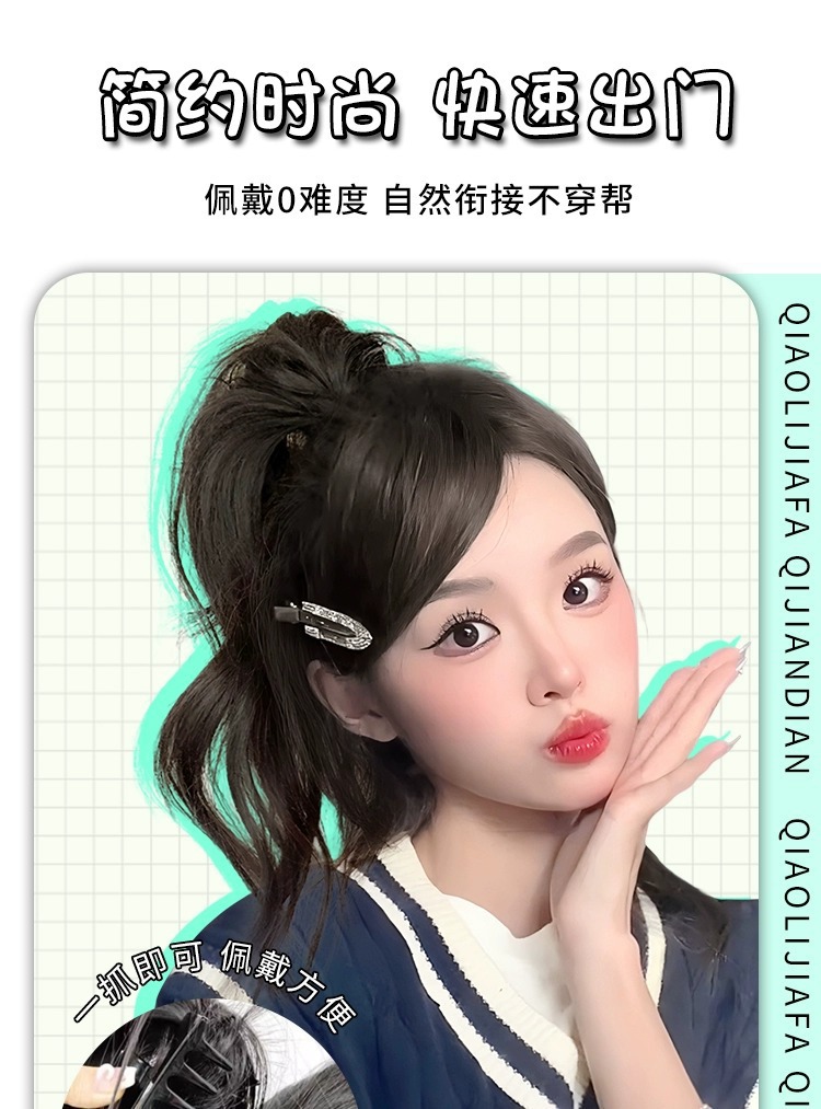ウィッグ三つ編み甘くてクールなホットガール 2025 新しいポニーテールインターネット有名人人工毛ハーフタイウォーターフォールポニーテールグリッパークリップウィッグ