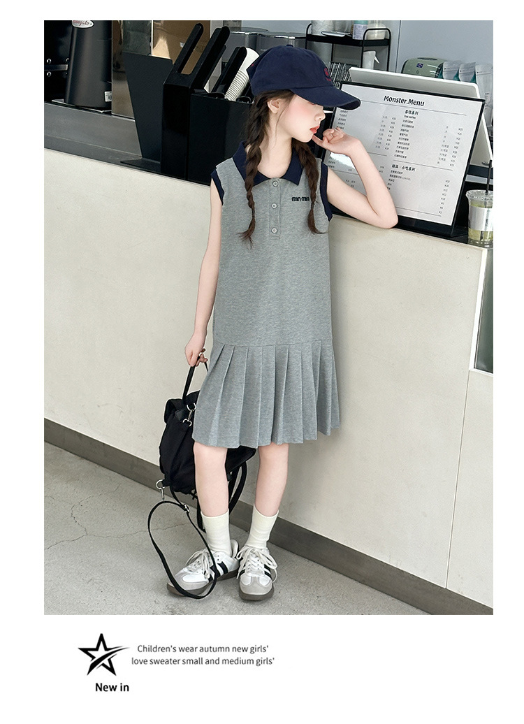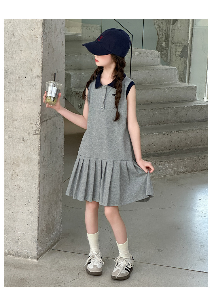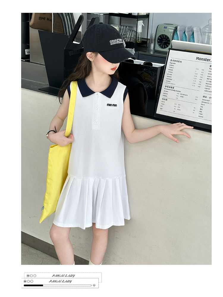 女の子ノースリーブドレス 2025 夏の新スタイル韓国カジュアルポロスカート大きな子供のための小さな女の子カレッジスタイルスカート