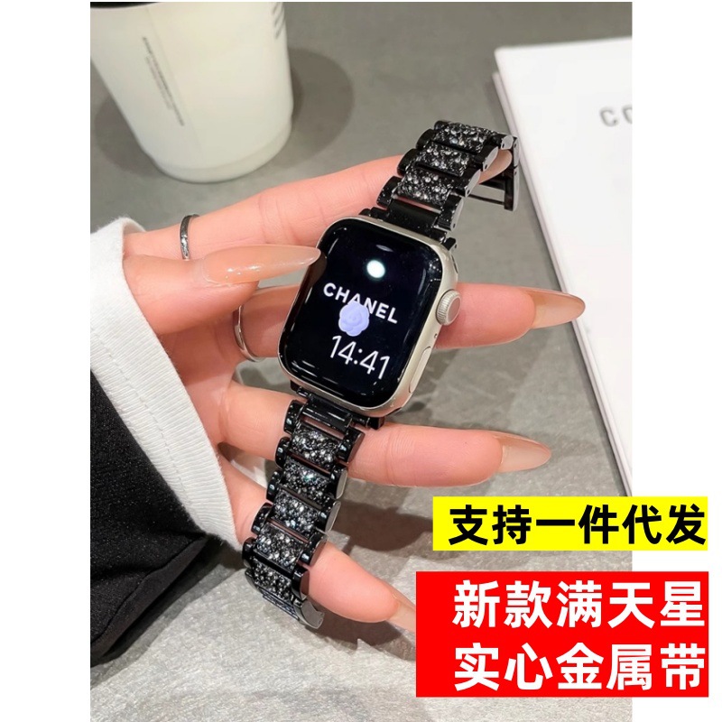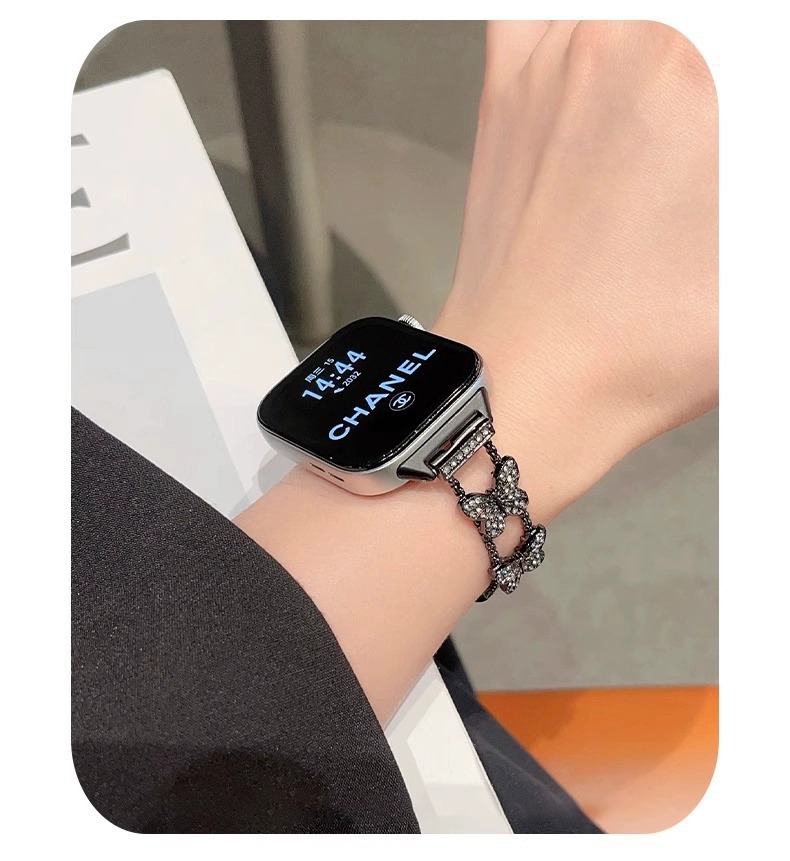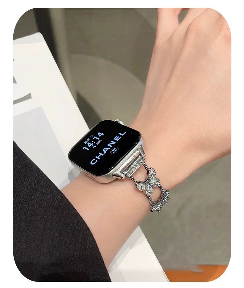 適用アップル腕時計iwatchs9バンド小香風四葉草金属チェーンapplewatchs8バンド