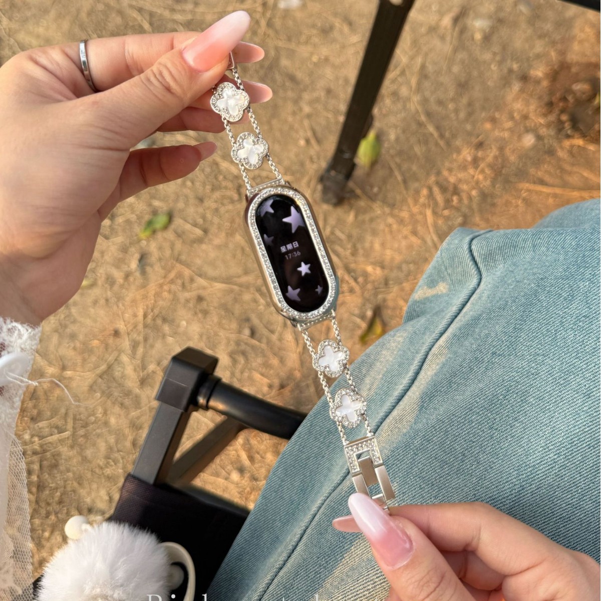 適用小米手環9/8NFCバンド金属四葉草貝母ブレスレット華為手環8/9リストバンド