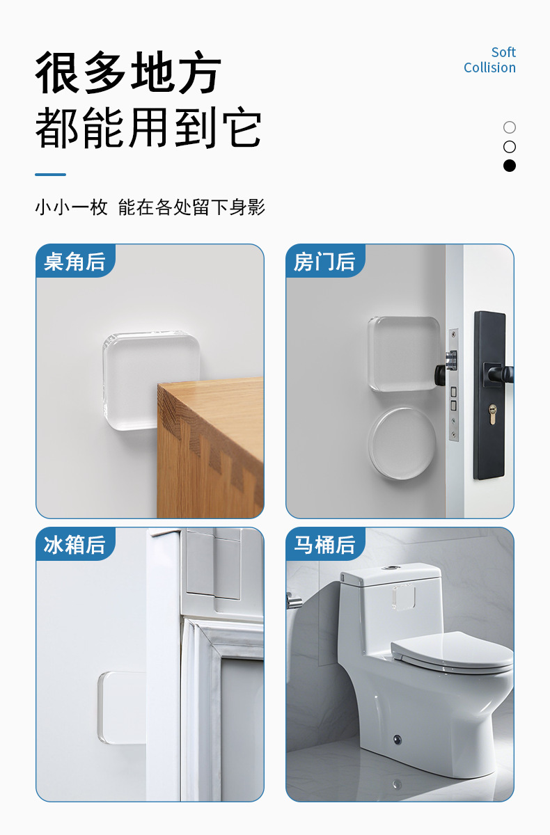 门把手防撞贴硅胶静音垫冰箱门贴门挡条防碰撞神器柜门后颗粒墙贴
