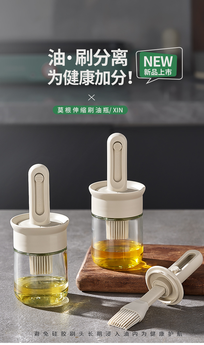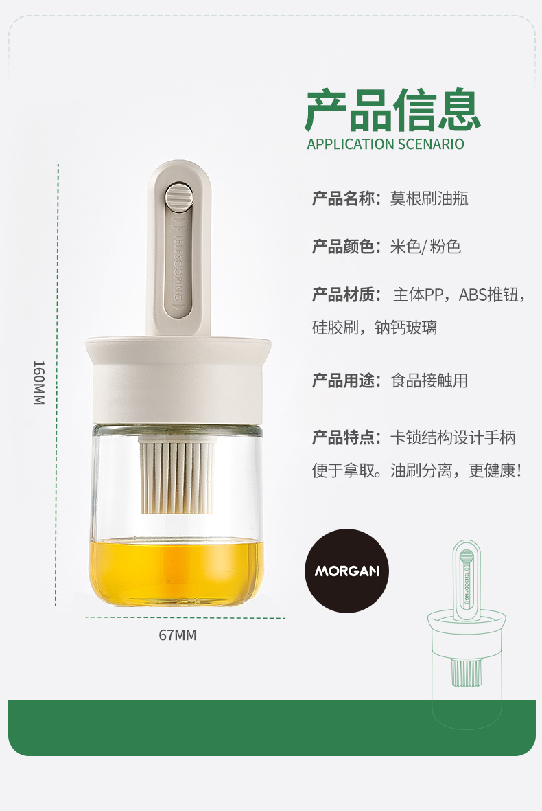 商品名称:莫根刷头刷盖一体调料瓶可伸缩刷油瓶煎烤烘焙刷油神器锁扣式油壶