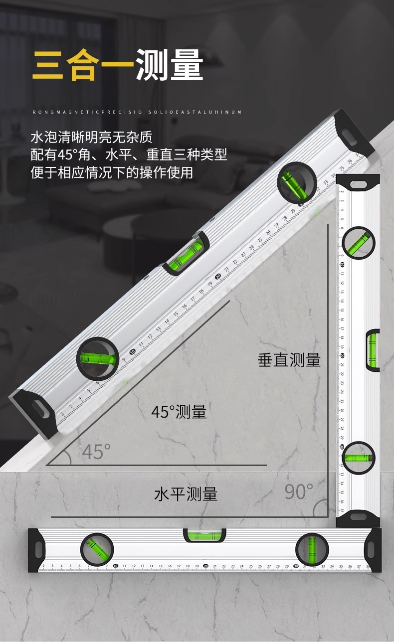 中実水平尺多規格高精度鋳造アルミ強磁水平尺専門家庭用測定ツール