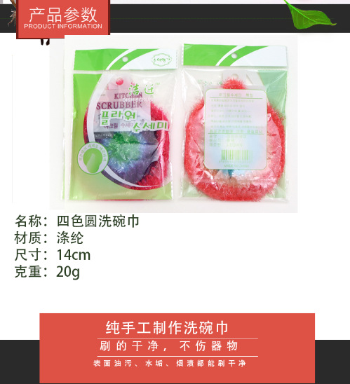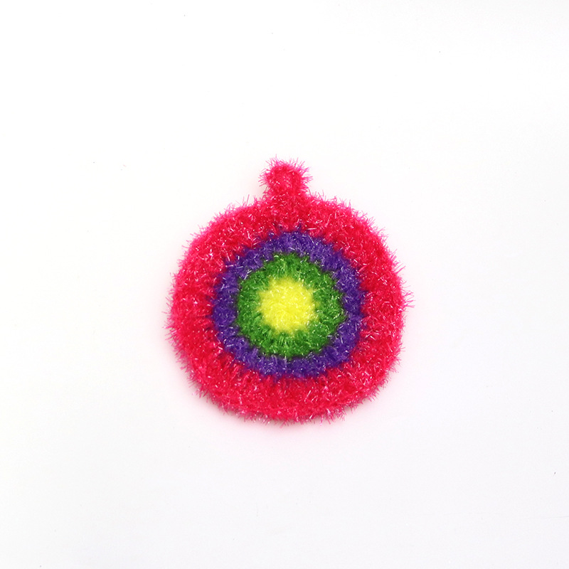 韓国への貿易輸出用アクリル製食器洗いタオル、吊り下げ可能な4色の丸型食器洗いタオル、吸水性を高める厚手のたわし