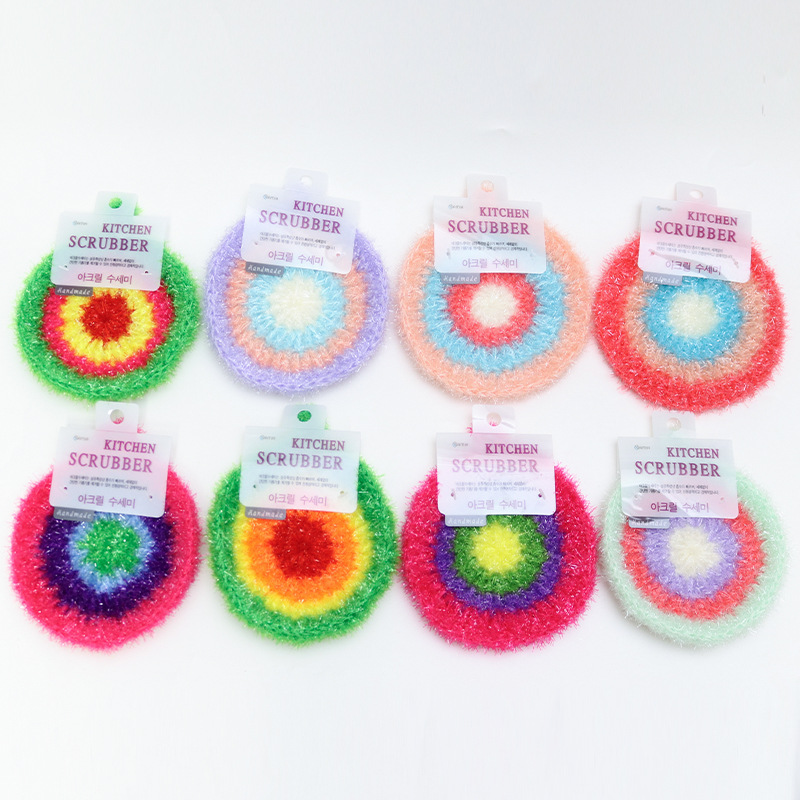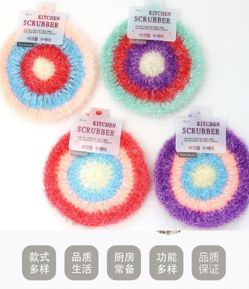 マカロン4色丸型食器洗いタオルのクロスボーダー新バージョン、アクリル製手編み、おしゃれで鍋を傷めないキッチン雑巾