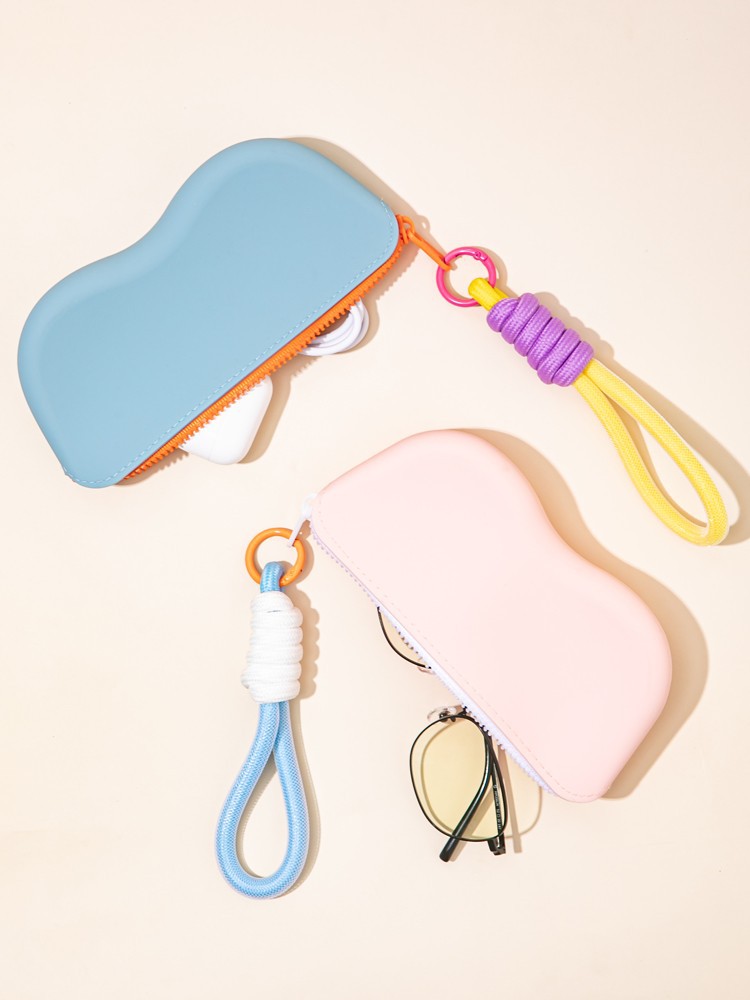 跨境硅胶爆款眼镜收纳包多巴胺硅胶眼镜包带编织挂绳墨镜收纳袋手