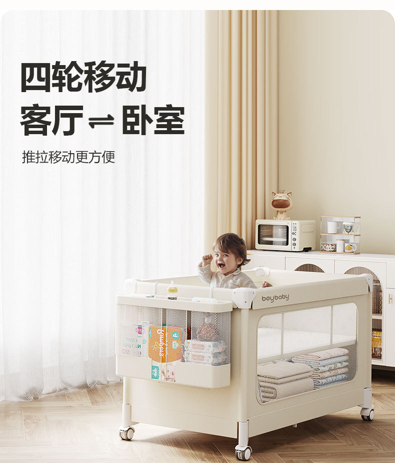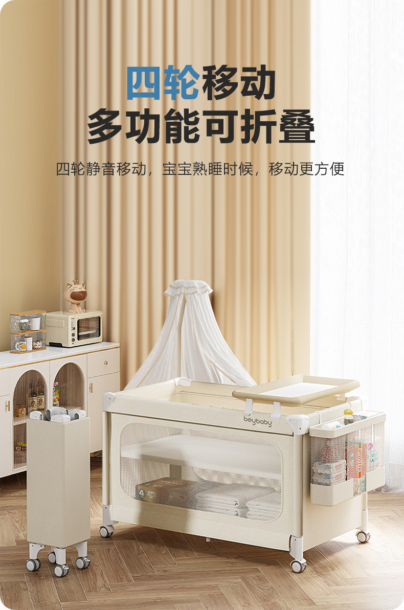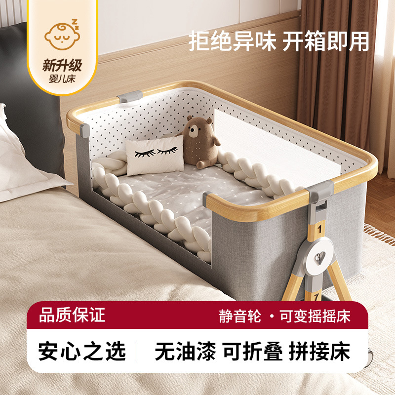婴儿床可移动多功能折叠新生儿摇篮床亚马逊便携式尿布台拼接大床