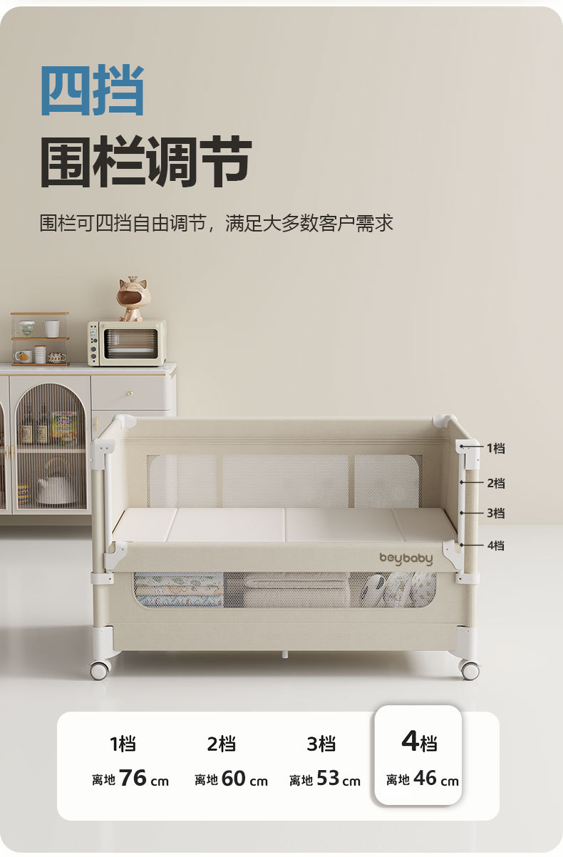 可折叠移动调节高度摇篮床新生儿便携式婴儿床拼接床多功能宝宝床