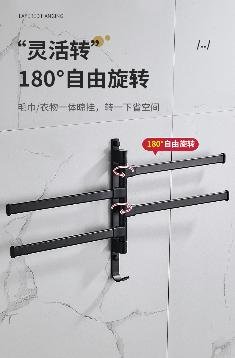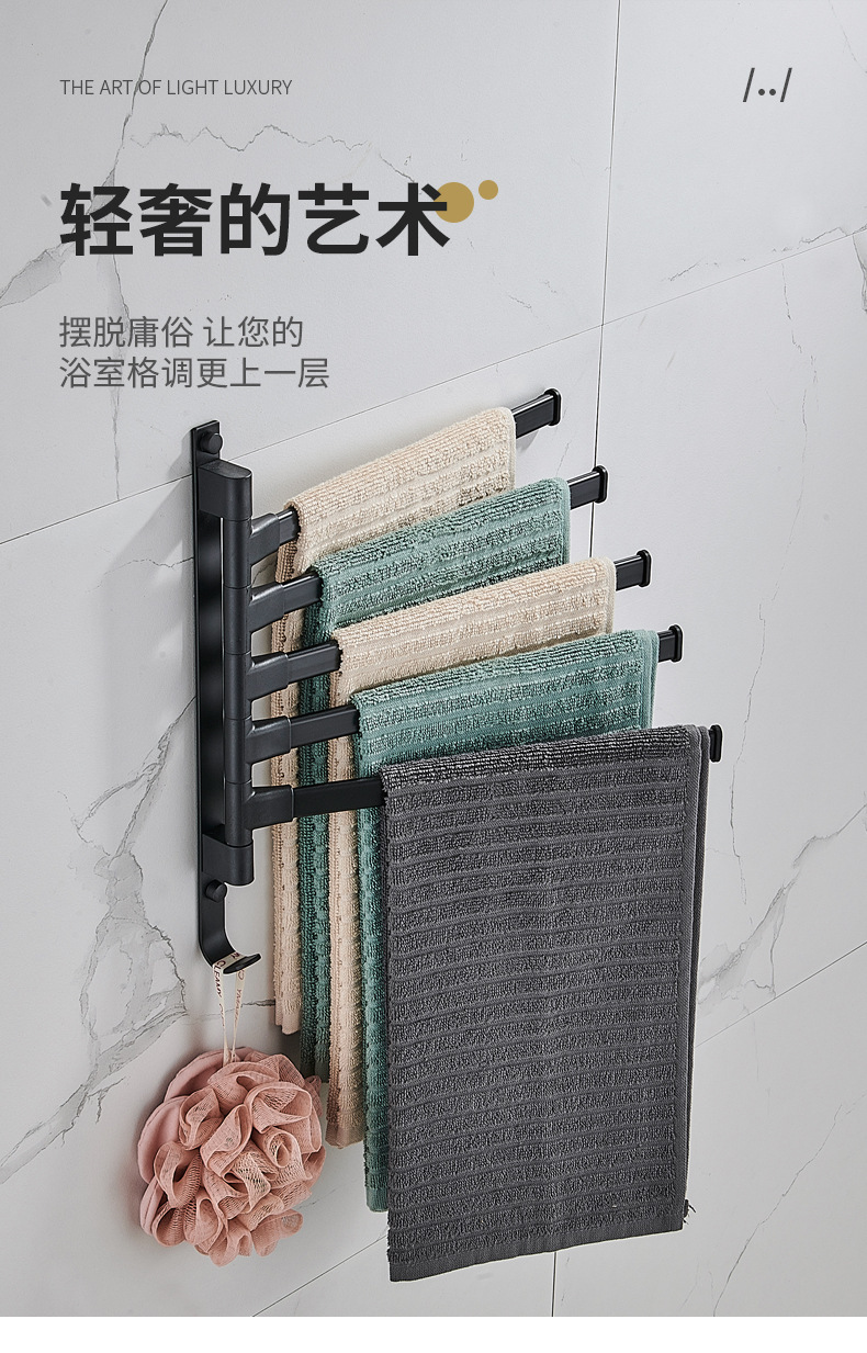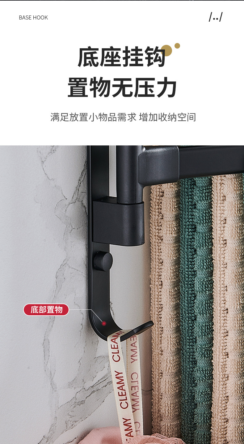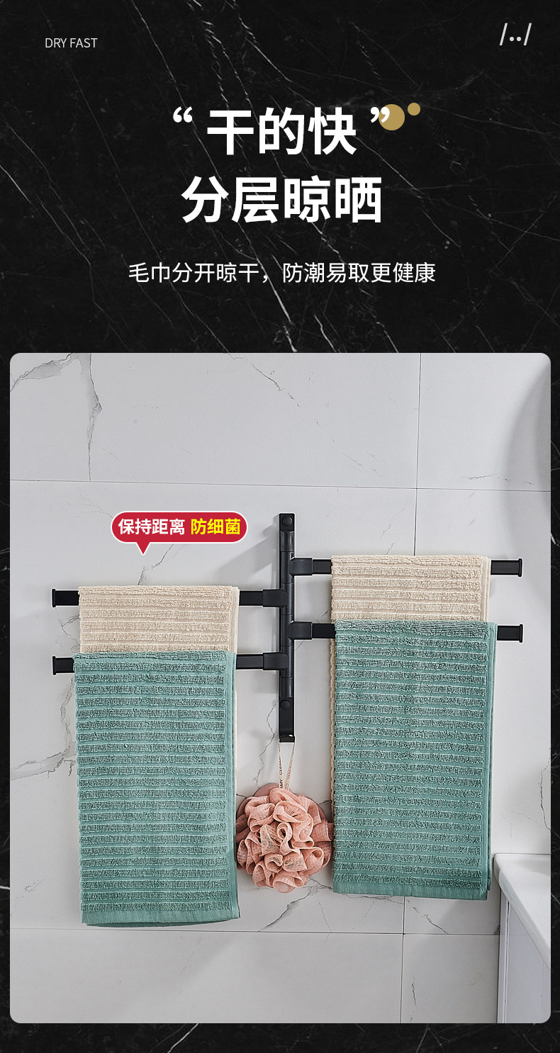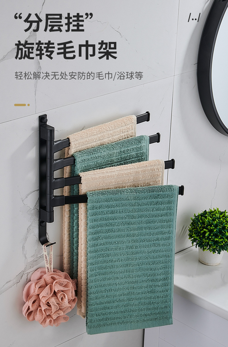 宇宙飛行アルミ穴なしトイレタオルラック黒色折り畳み回転タオルバー多層棚浴室ラック