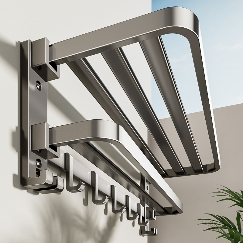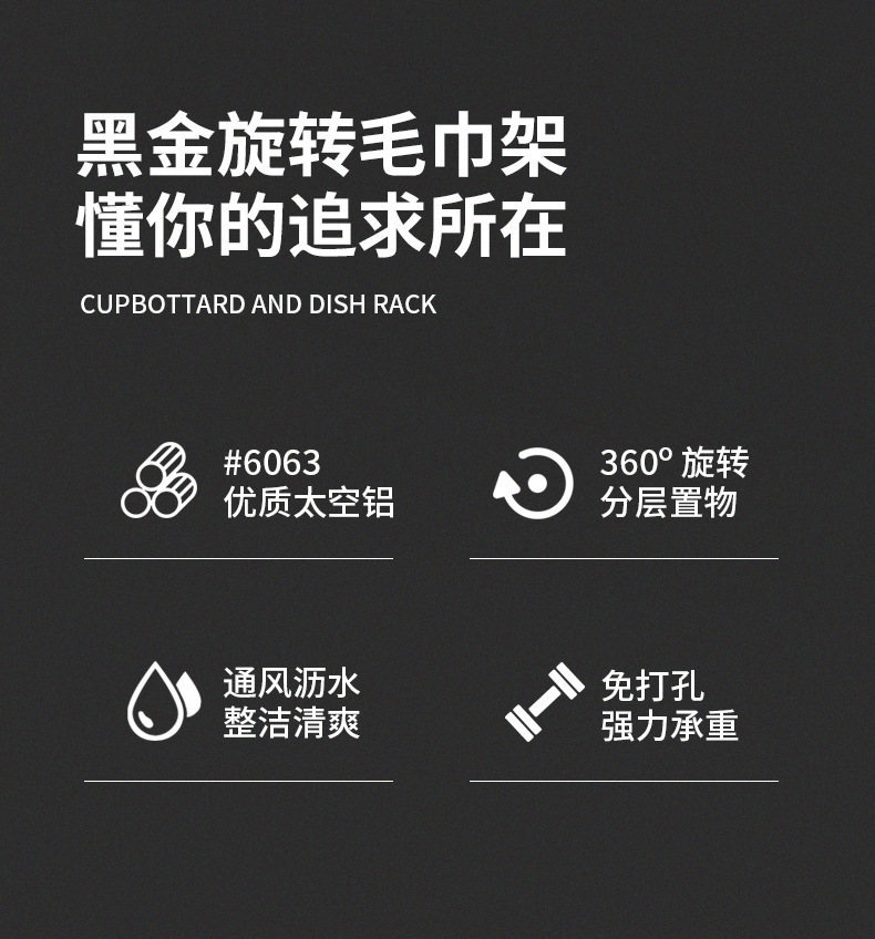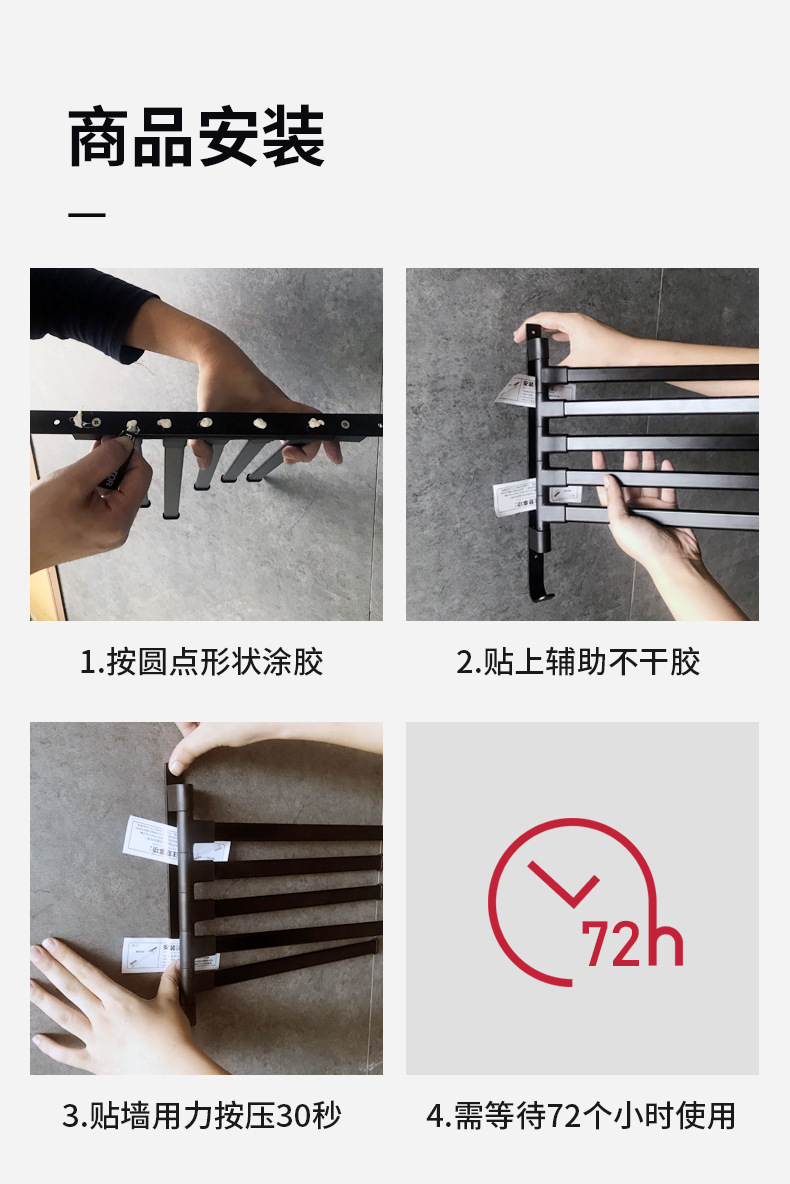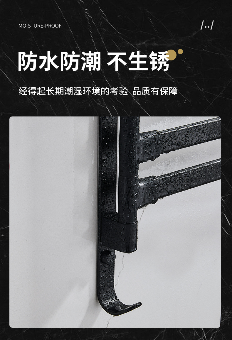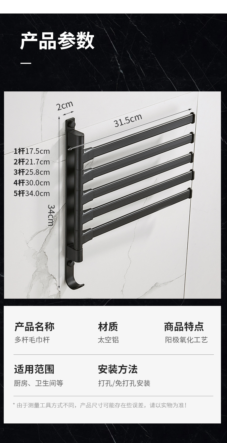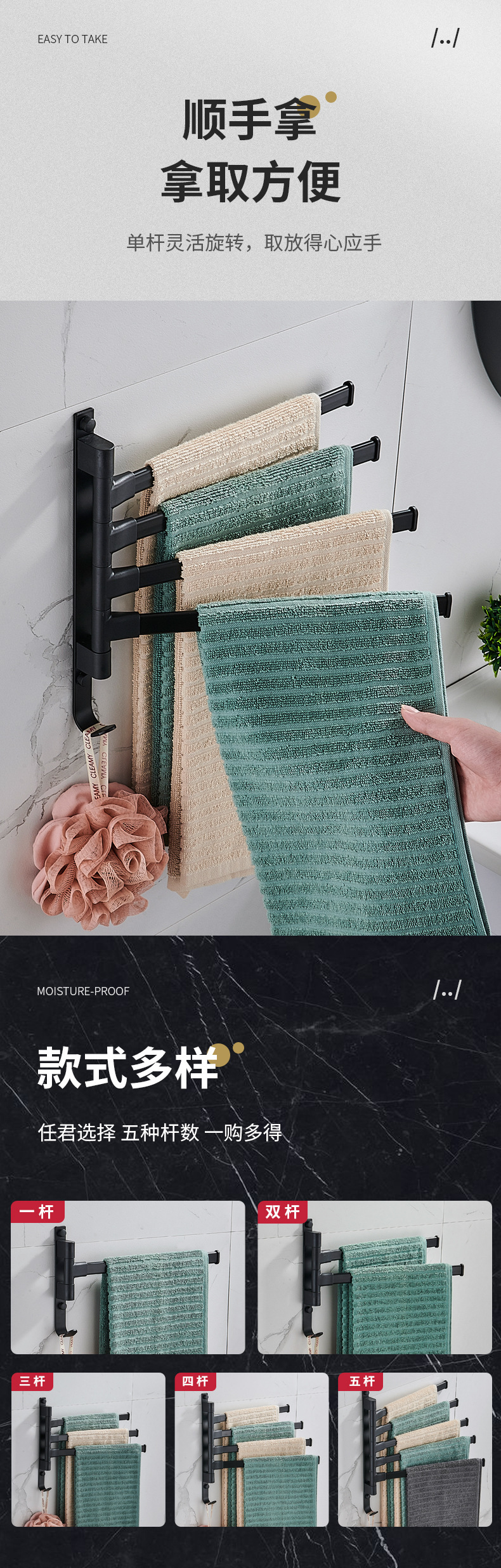 宇宙飛行アルミ穴なしトイレタオルラック黒色折り畳み回転タオルバー多層棚浴室ラック