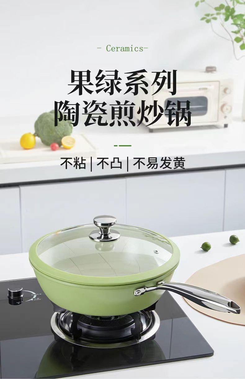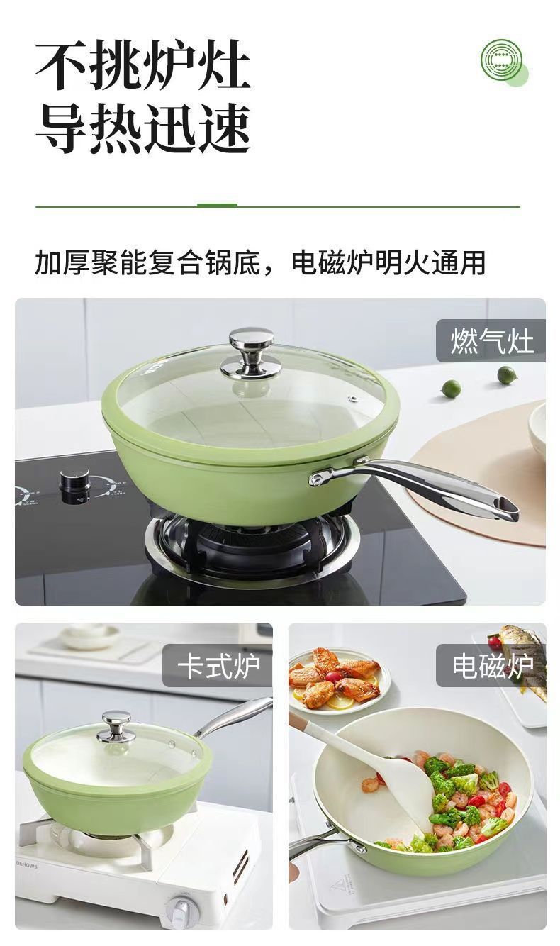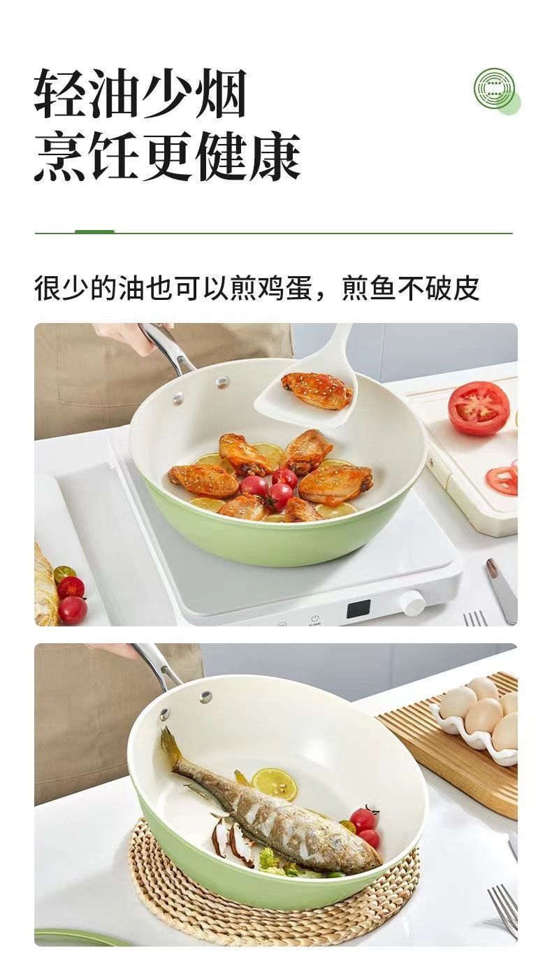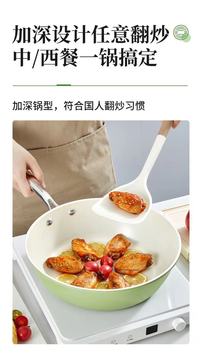 外側が緑色、内側が白い26cm中華鍋,外側26cmグリーン、内側ホワイト中華鍋+シリコン蓋,外側28cmグリーン、内側ホワイト中華鍋+シリコン蓋,外側が緑色、内側が白い30cm中華鍋,外側30cmグリーン、内側ホワイト中華鍋+シリコン蓋