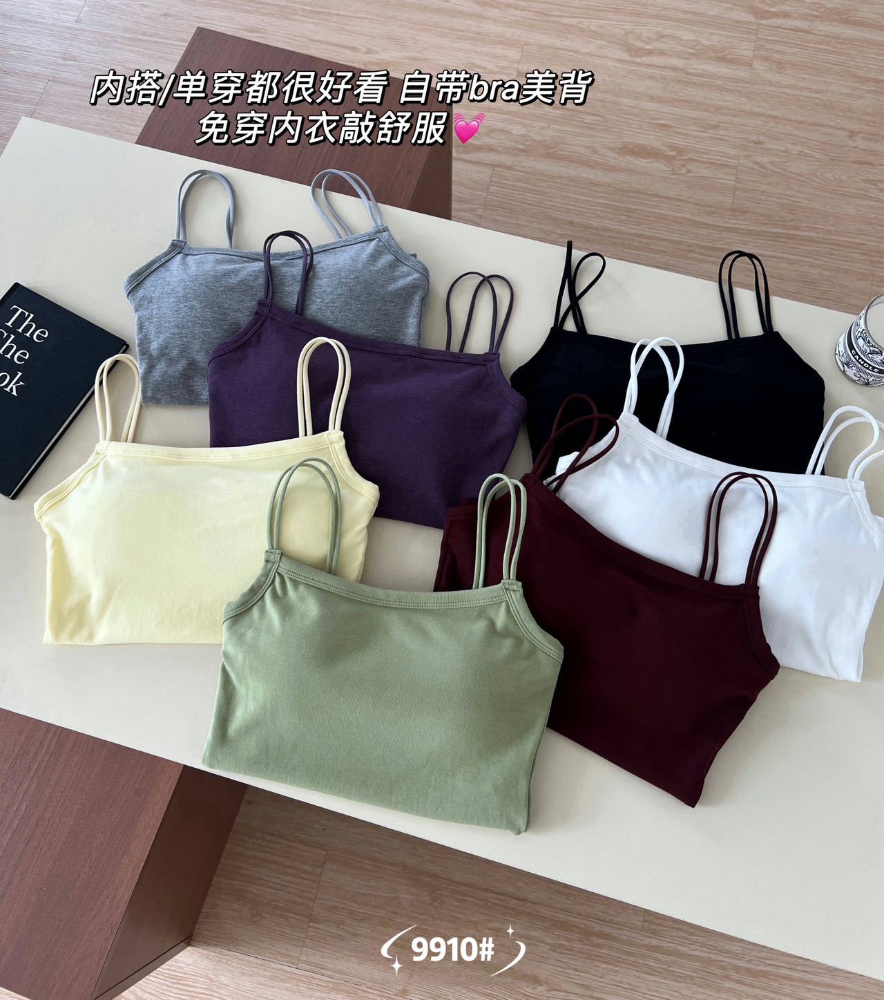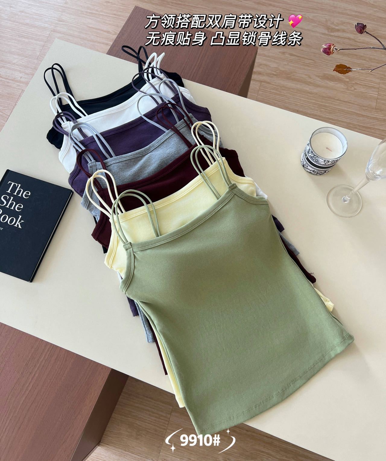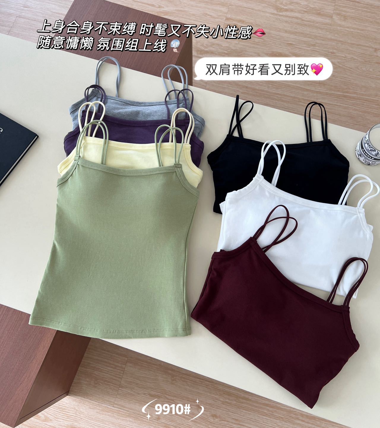 品名:简约一字领双细肩带美背吊带背心