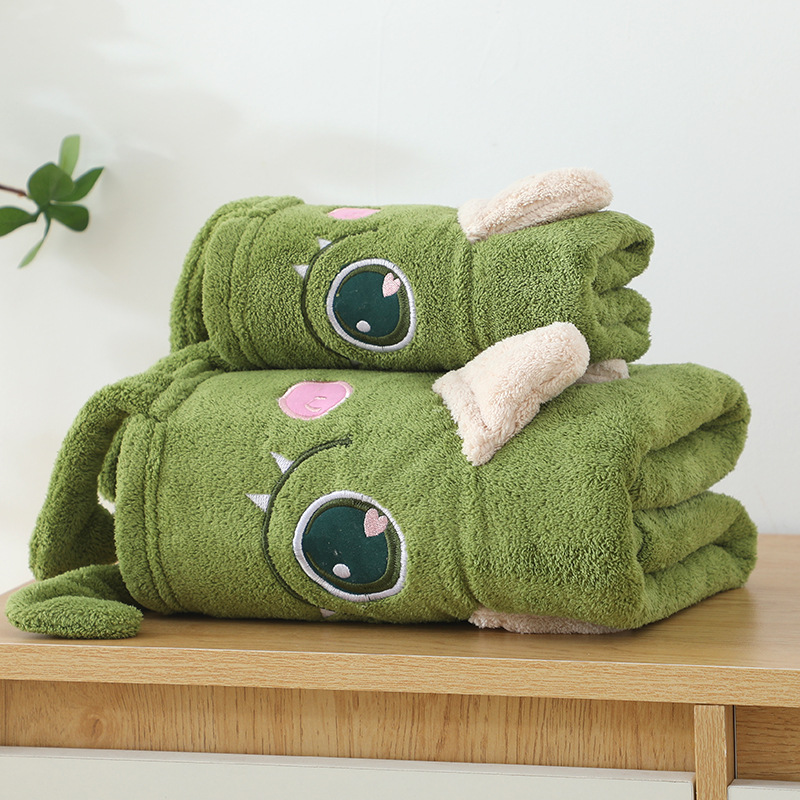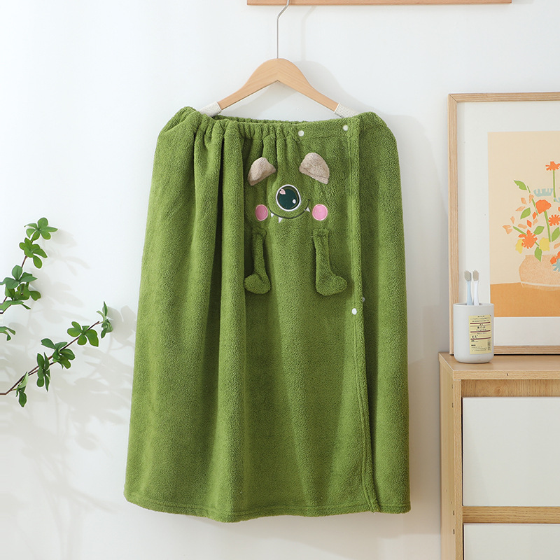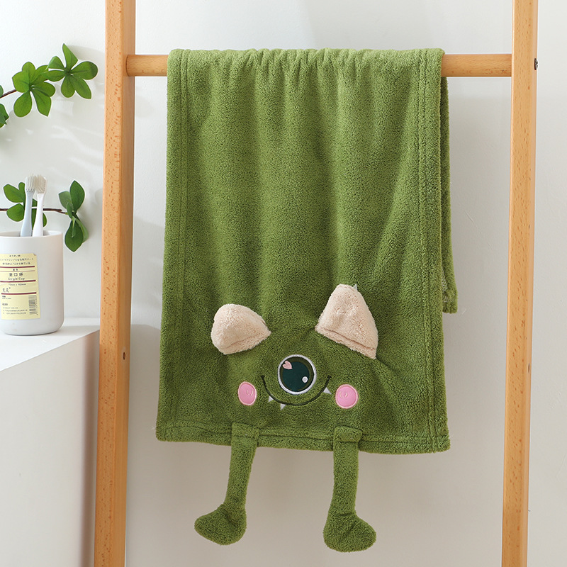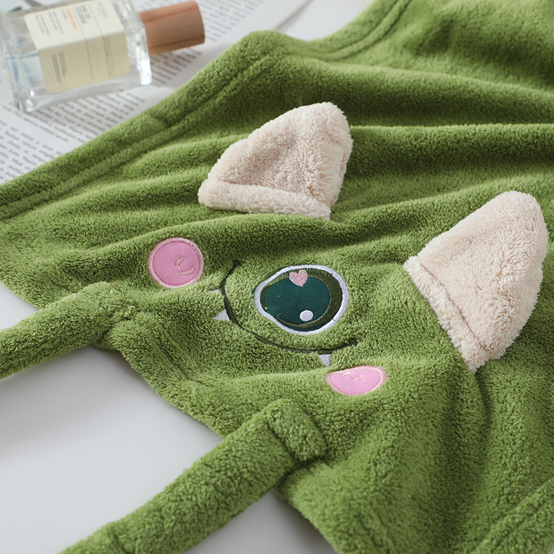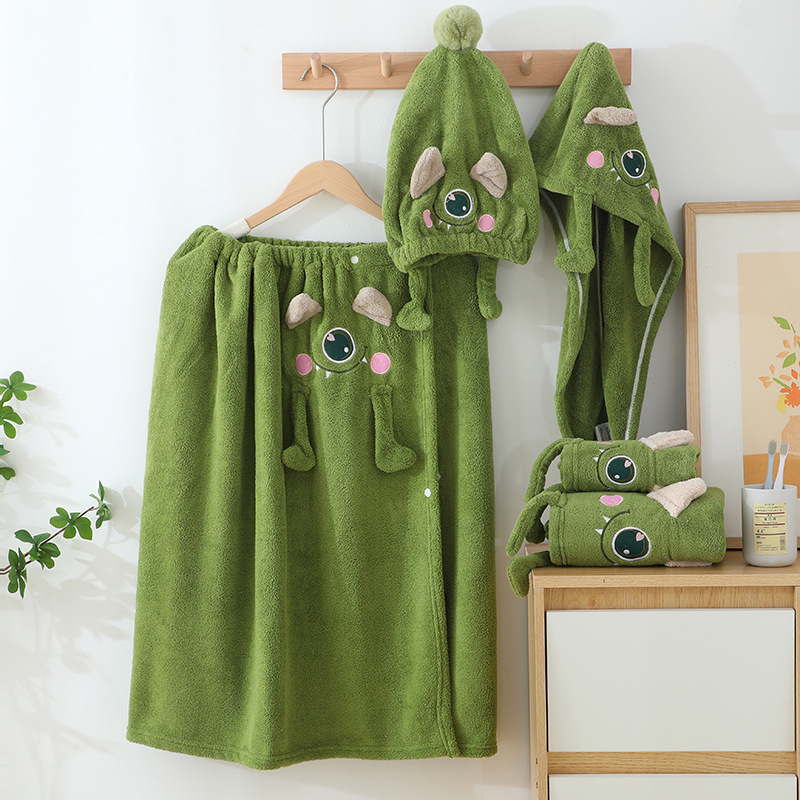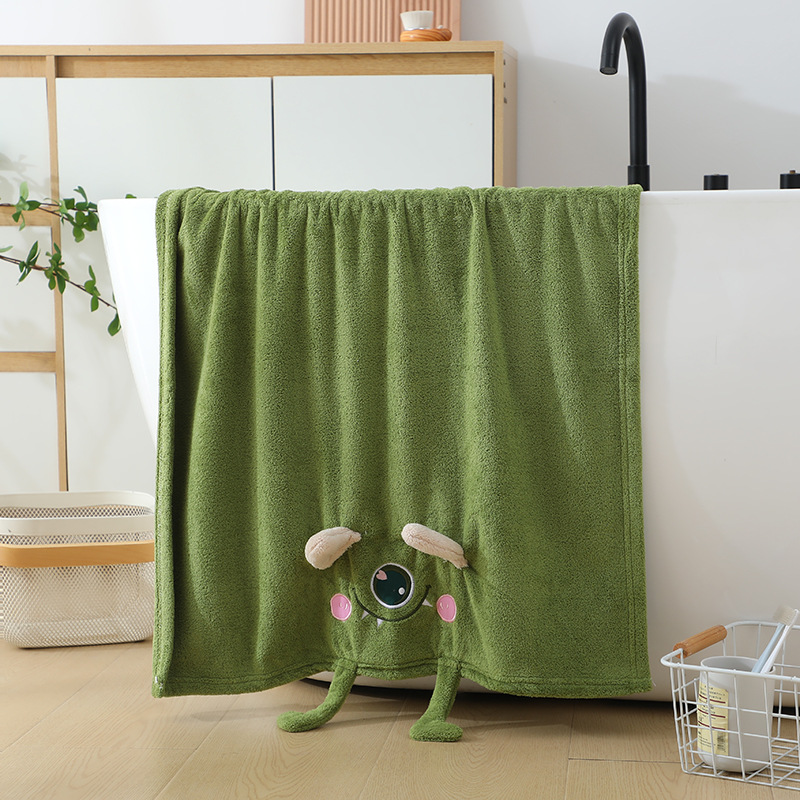 コーラルベルベットバススカート、女性用チューブトップ、3点セット、吸水性ヘアドライキャップ、子供用かわいい大きな目のモンスターターバンタオル
