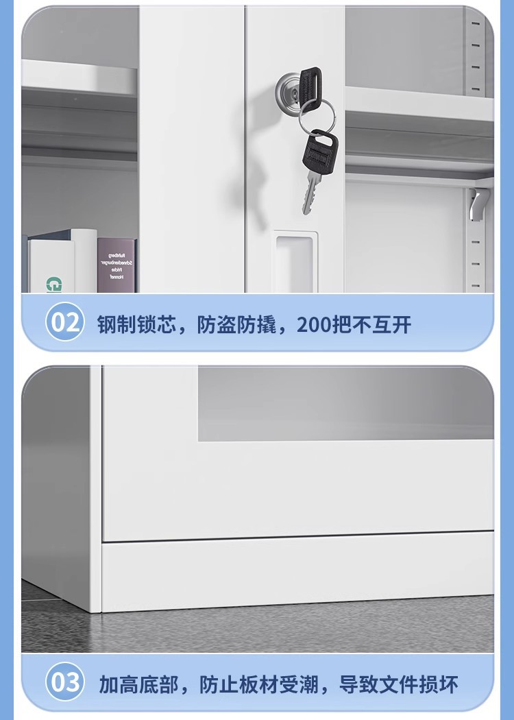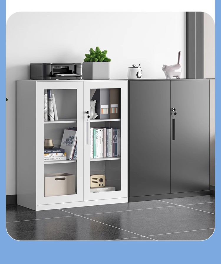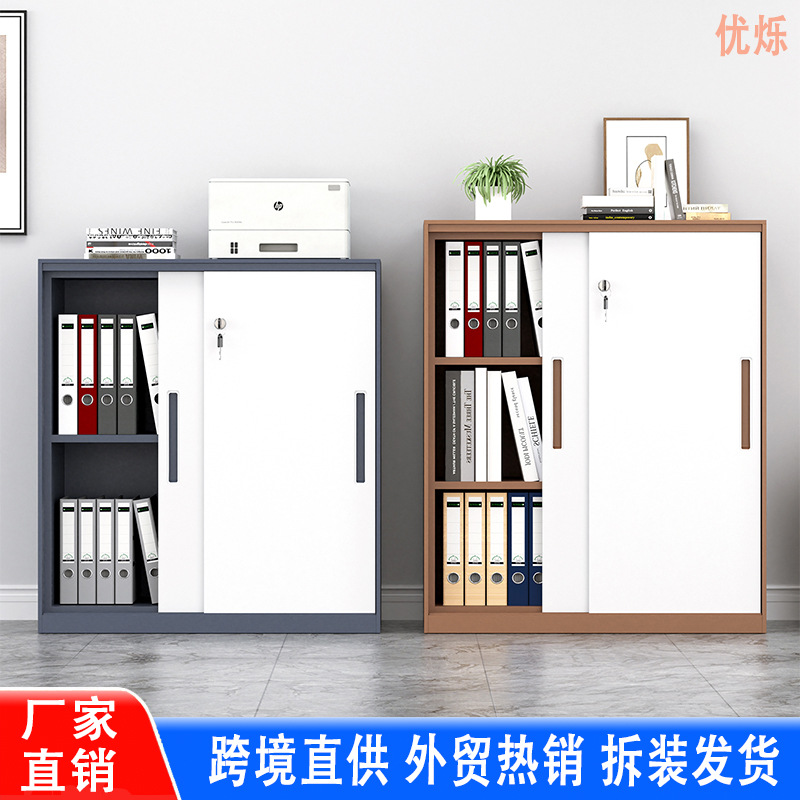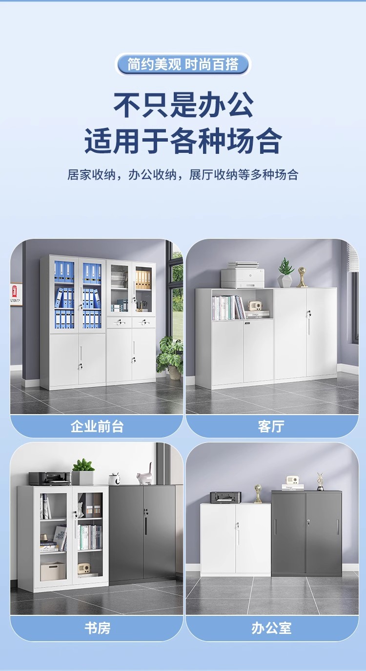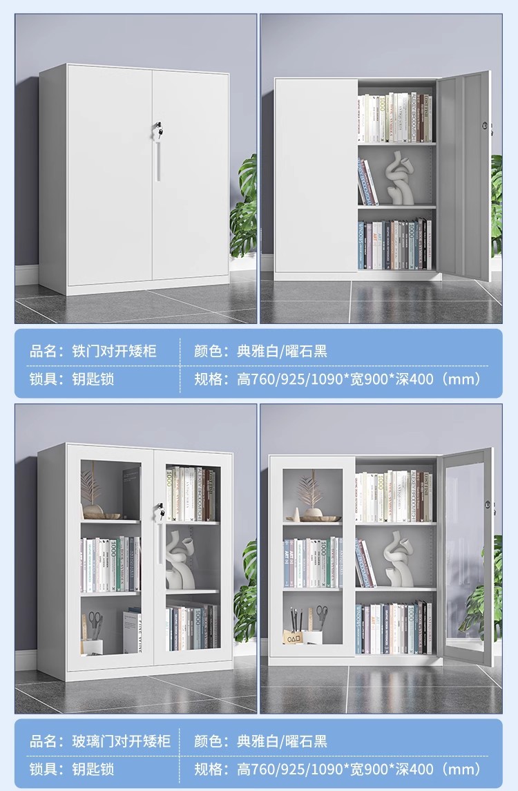 办公室文件柜铁皮档案资料柜带锁收纳隔断储物柜推拉移门玻璃矮柜