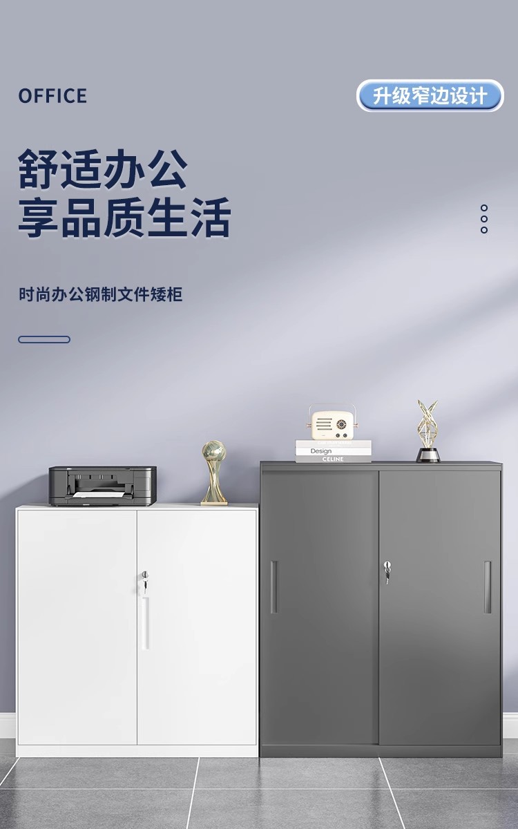 办公室文件柜推拉移门矮柜储物柜带锁档案柜资料柜隔断文件收纳柜
