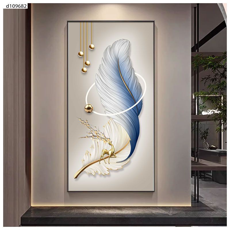 玄関ホール装飾絵画モダンライト高級廊下通路吊り絵画垂直バージョン雰囲気リビングルーム背景壁壁画フレーム付き