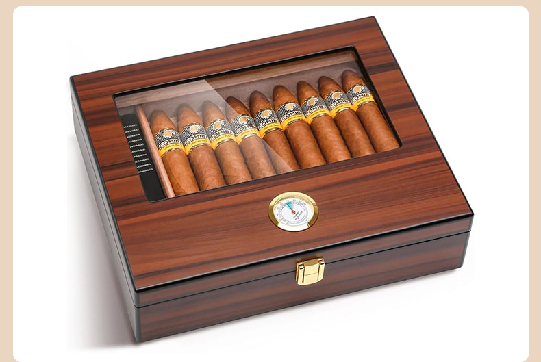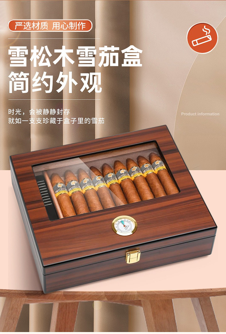 葉巻箱高光沢塗装杉材恒温保湿箱密封窓収納葉巻木箱葉巻収納箱