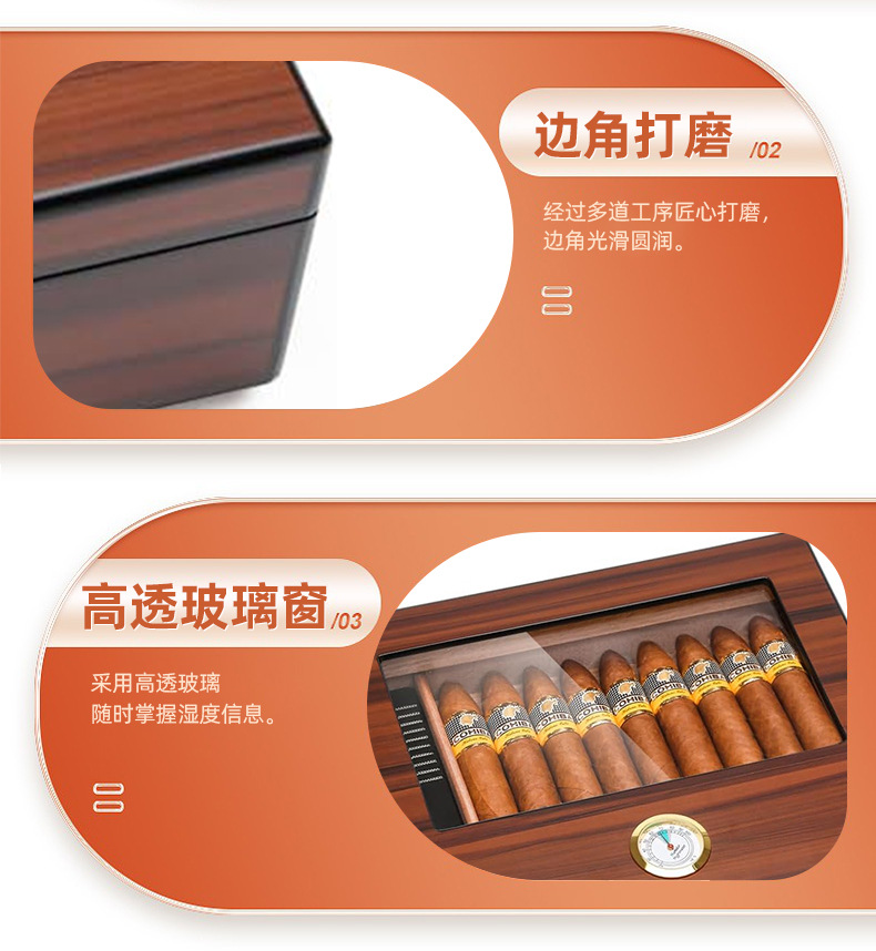 クロスボーダー艶消し塗料面電子湿度計シガーボックス二重透窓シガーウッドフリップシール保湿ボックス
