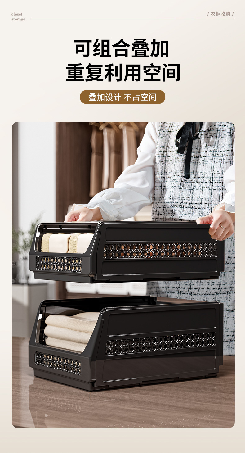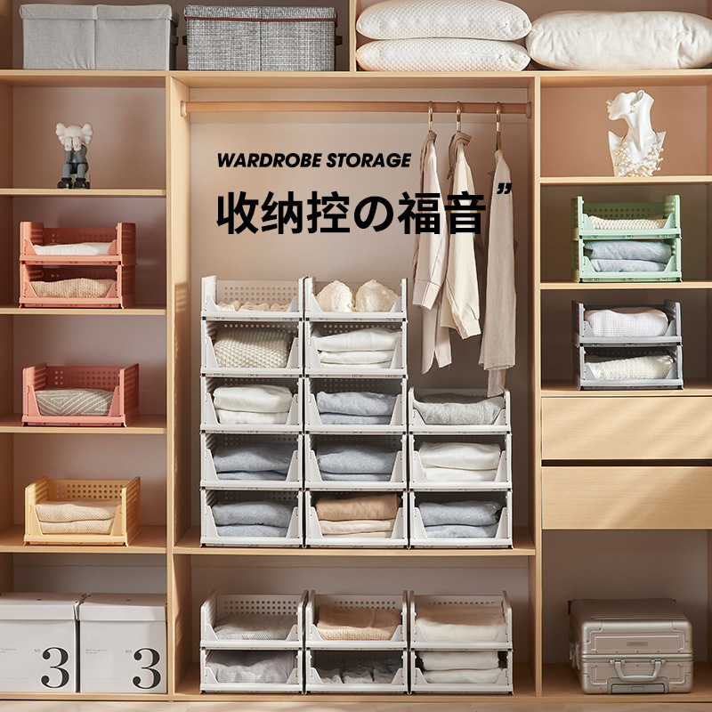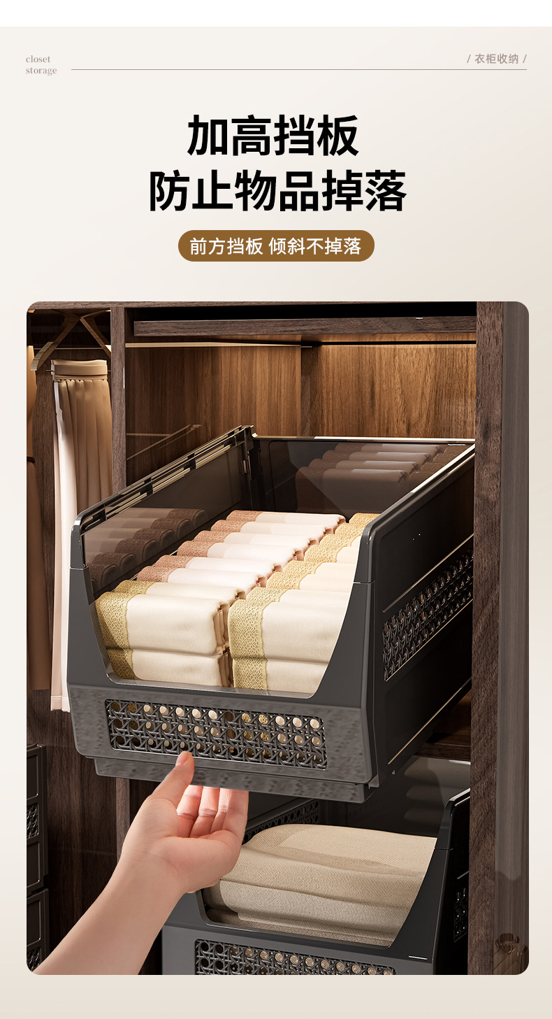 衣柜收纳家用衣物收纳筐折叠抽拉叠加收纳篮宿舍整理衣橱内衣盒