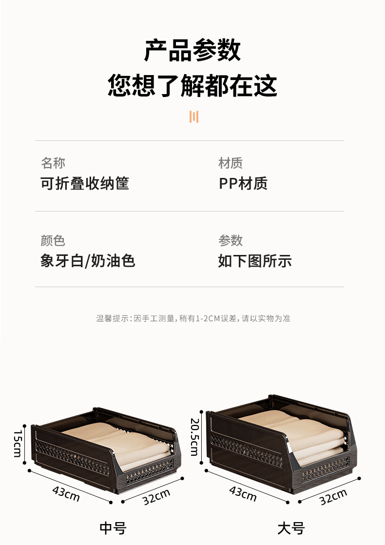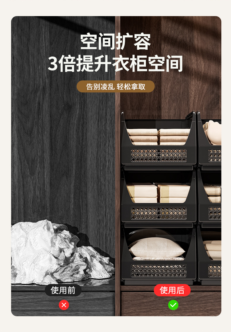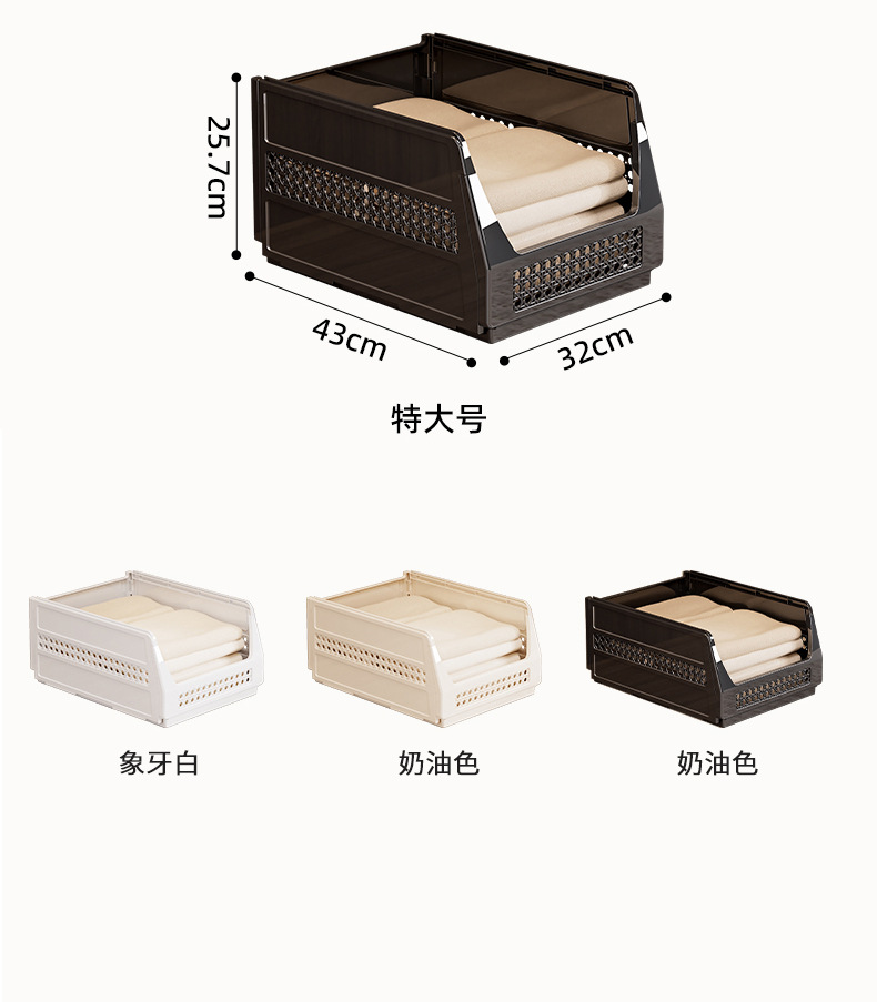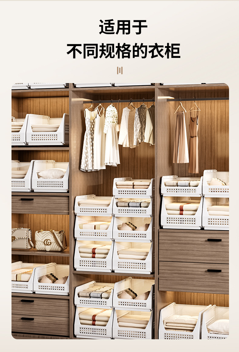 衣柜收纳家用衣物收纳筐折叠抽拉叠加收纳篮宿舍整理衣橱内衣盒
