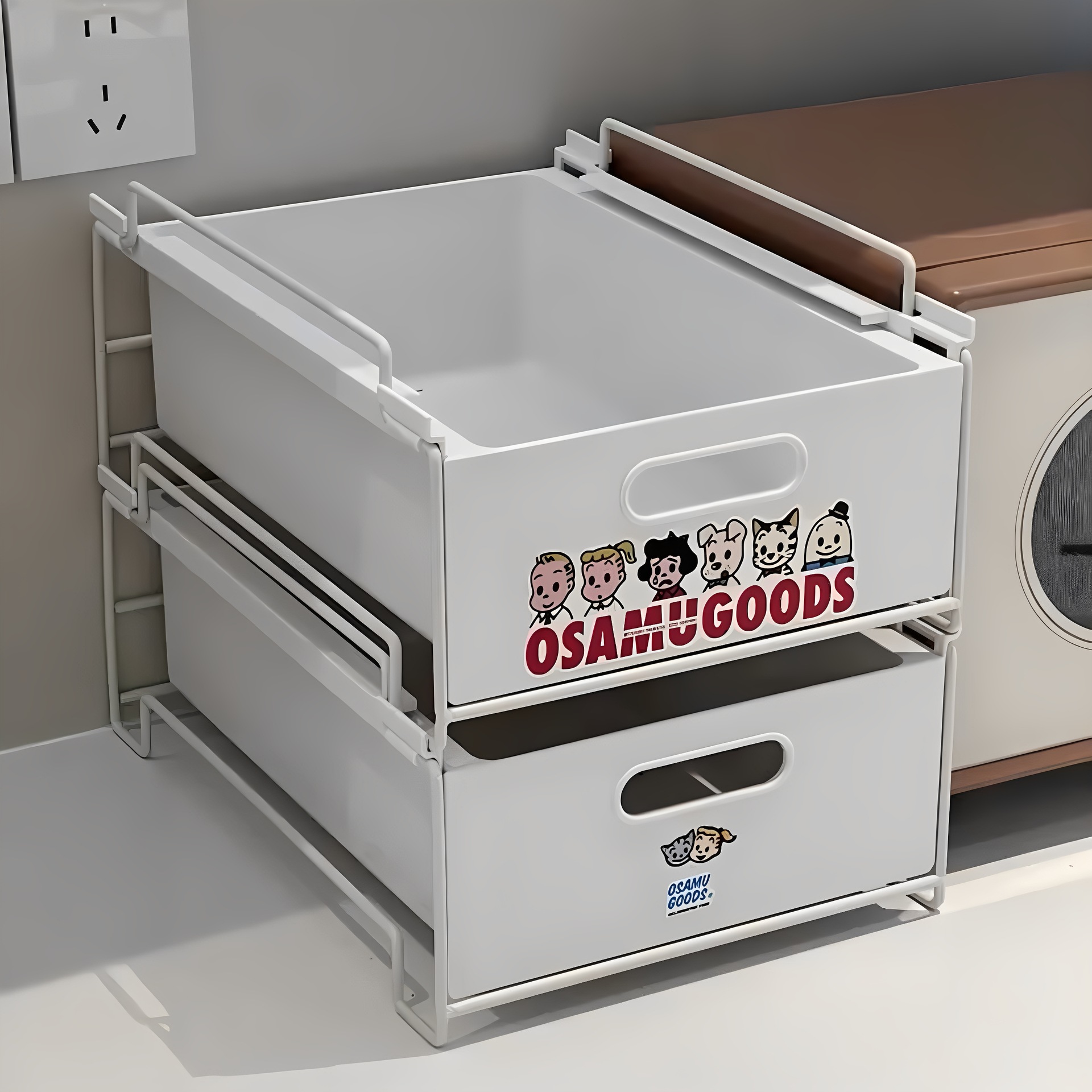 ハラダ治 キッチンキャビネット収納ボックス 家庭用引き出し式積み重ね可能収納ラック 鉄製バスケット 雑貨整理棚