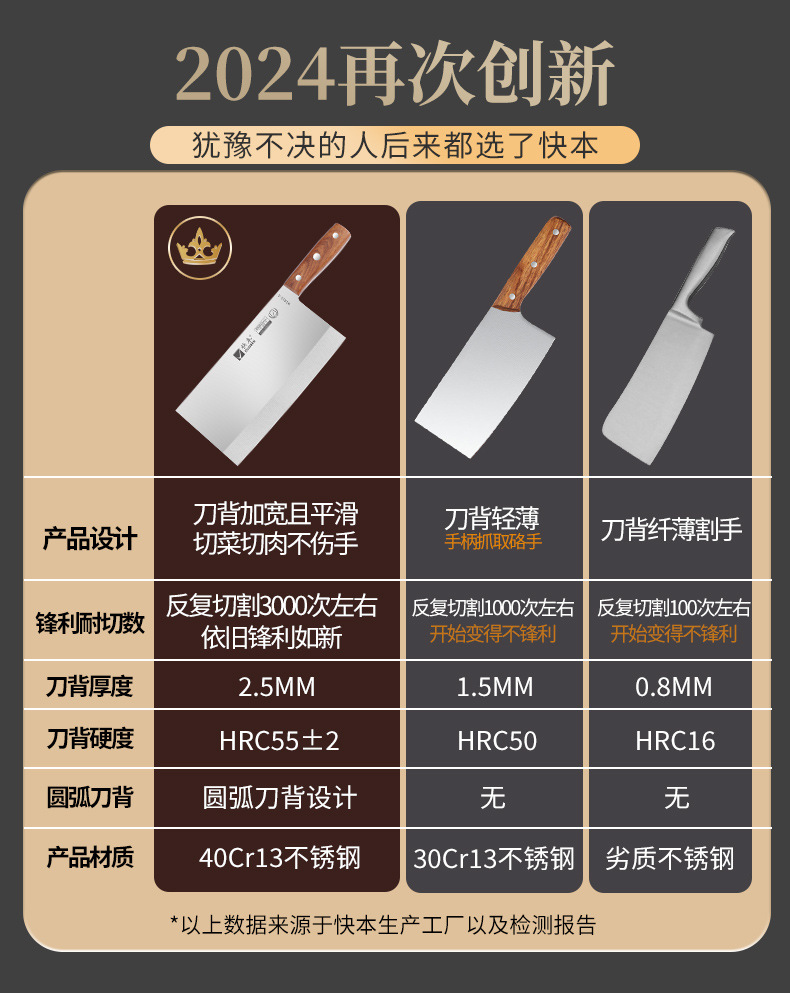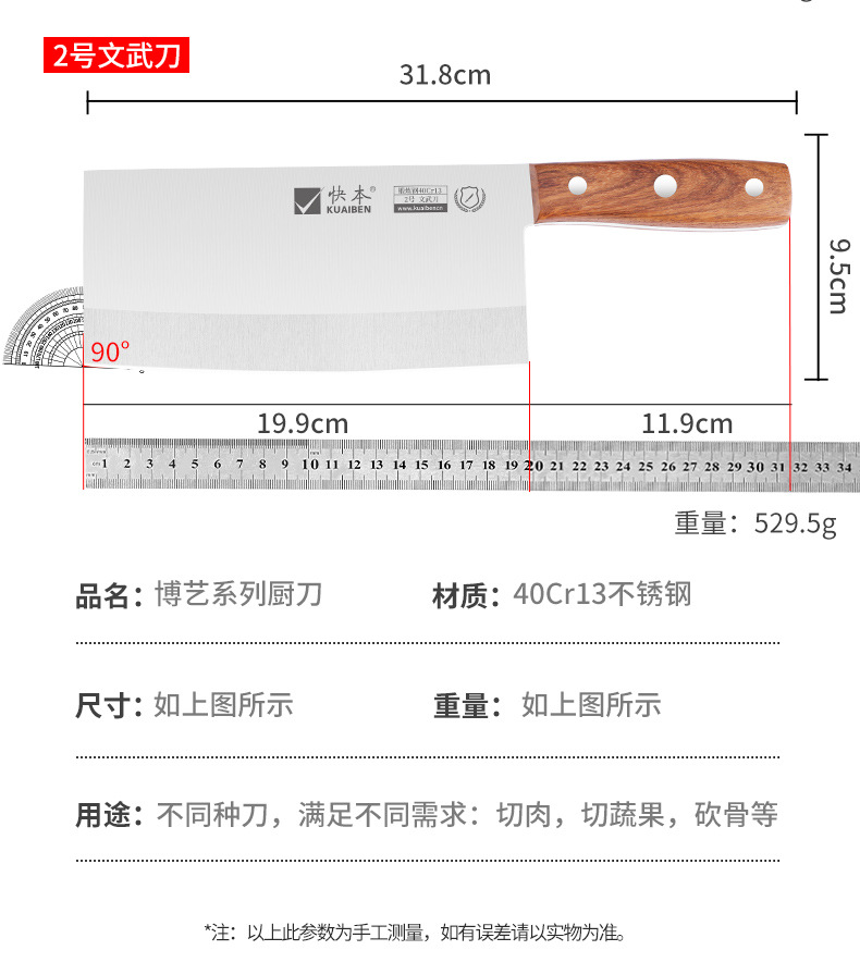 快本菜刀家用厨房女士专用切菜刀切肉刀具厨师刀斩切刀锋利旗舰店