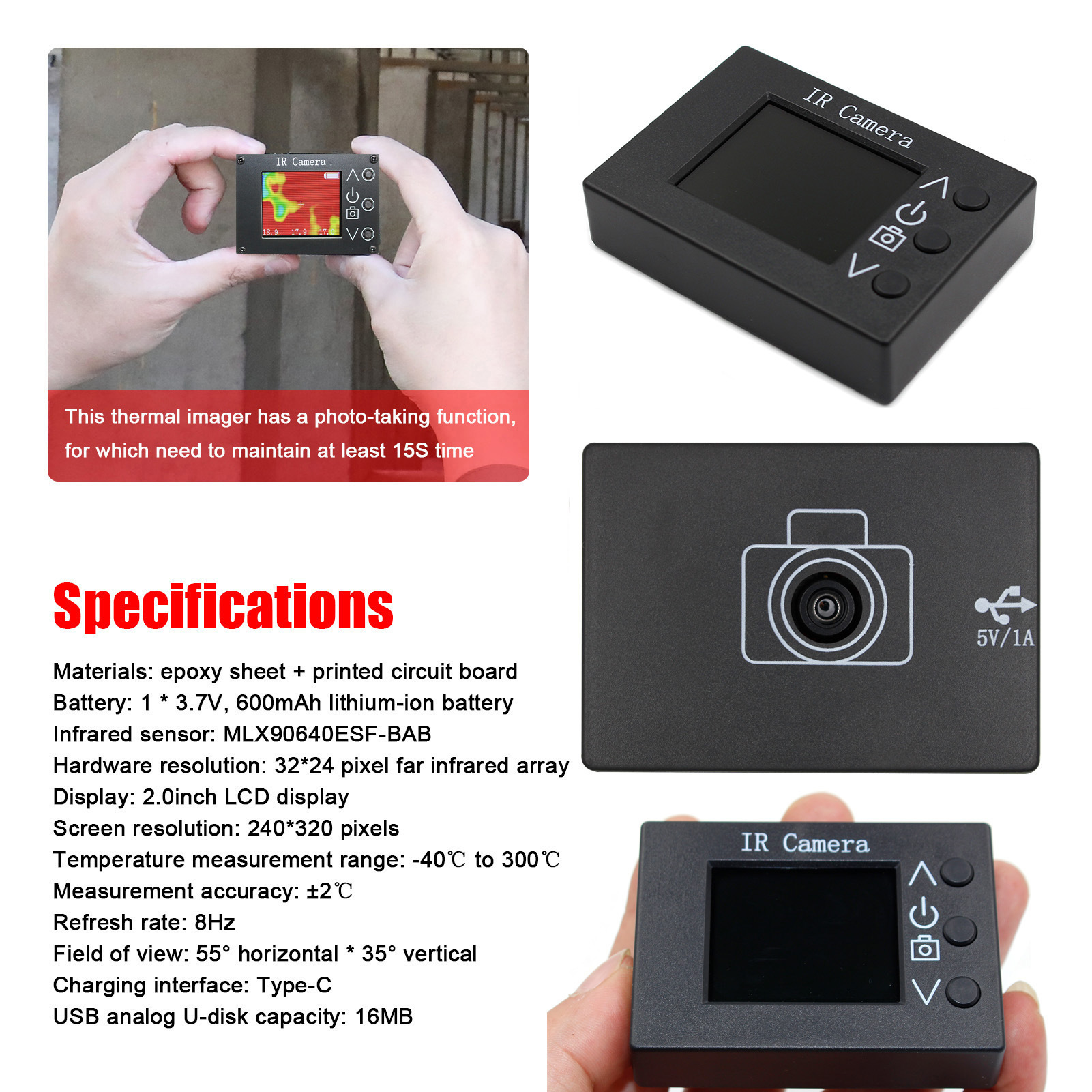 这是一款手持多功能使用MLX90640ESF_BAB红外传感器热像仪,具有体积小、重量轻的特点。搭配1.8" TFT显示屏,数据一目了然。可用于多种场合,是家庭和工业使用不可缺少的工具。
