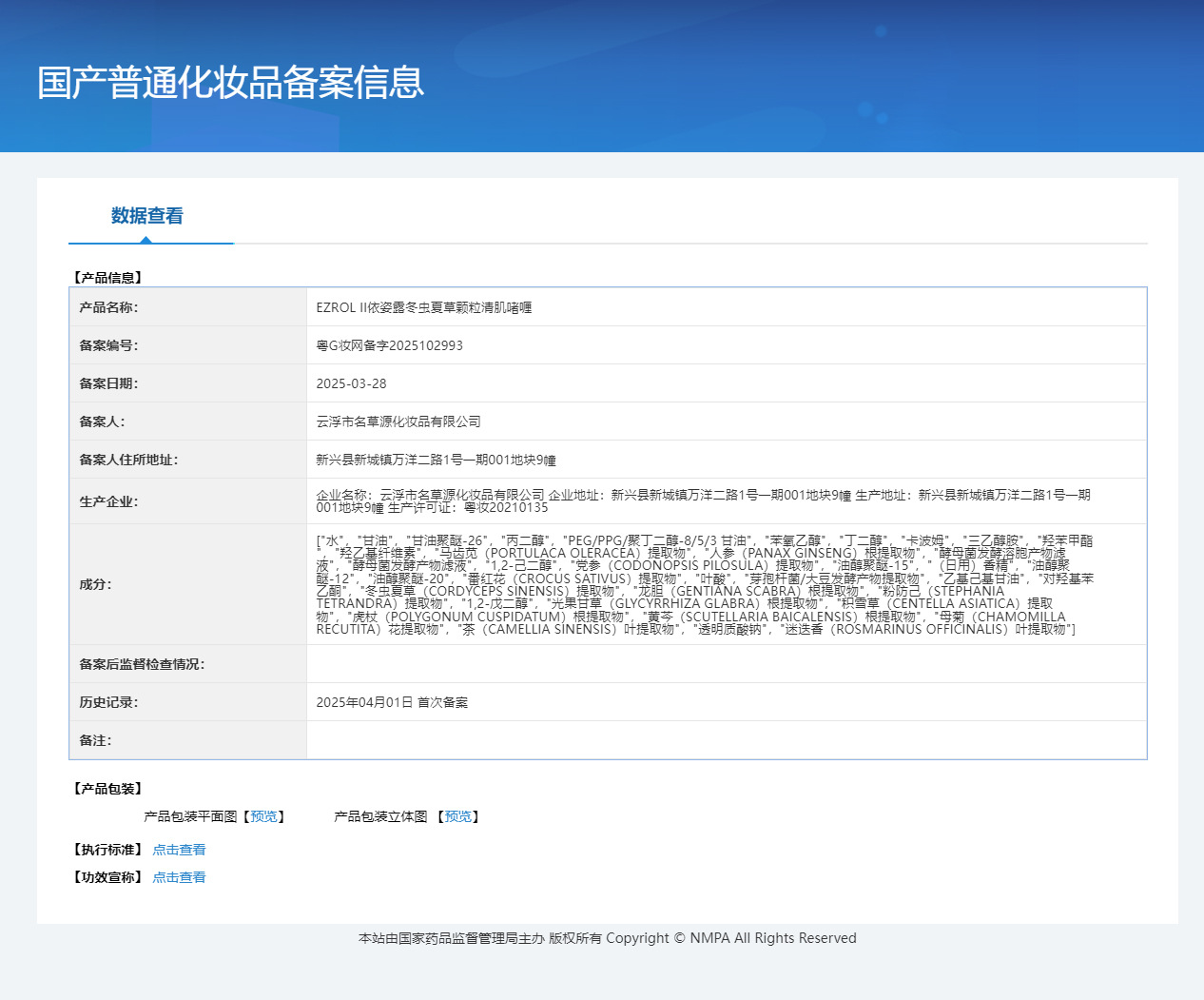 非特殊化粧品登録証番号 広東Gメイクアップネットワーク準備番号 2025102993