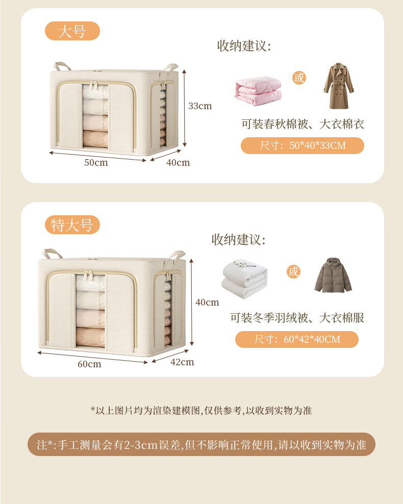 24L(長さ40×幅30×20cm),66L(長さ50×幅40×高さ33cm),100L(長さ60×幅42×高さ40cm)
