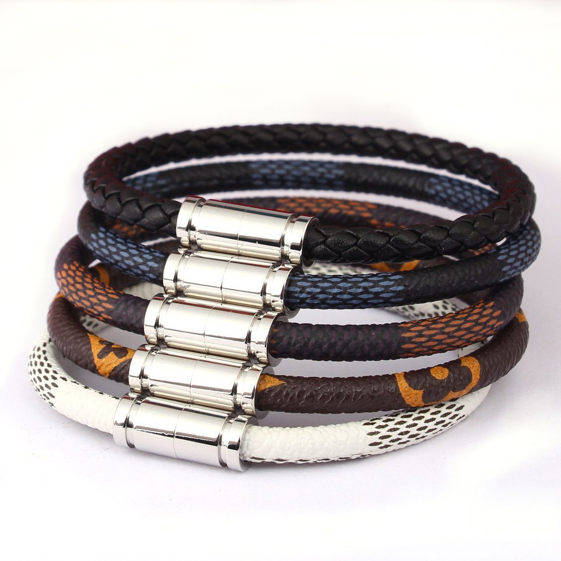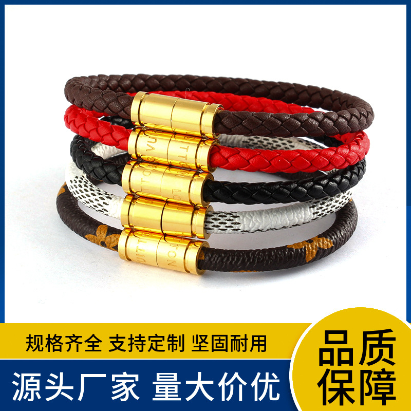 热销皮绳手链情侣经典老花色手镯百搭时尚编织牛皮手环钛钢磁吸扣