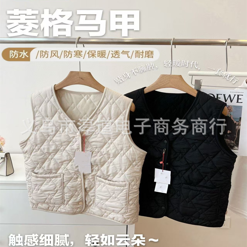 U菱格馬甲vネック馬甲とベルベットの女性秋冬保温綿の肩を挟んで肌着保温蓄熱保温金
