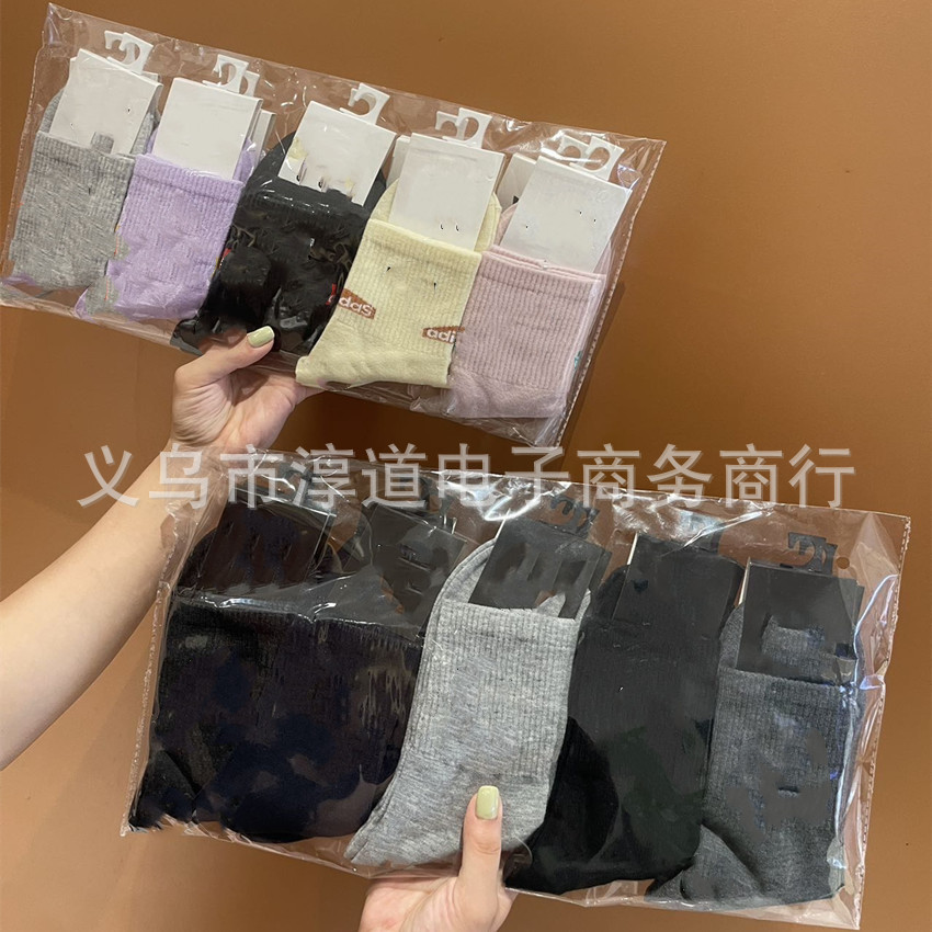 迪家小草中筒情侣袜运动长袜潮牌多巴胺运动袜子纯色袜子男女袜子