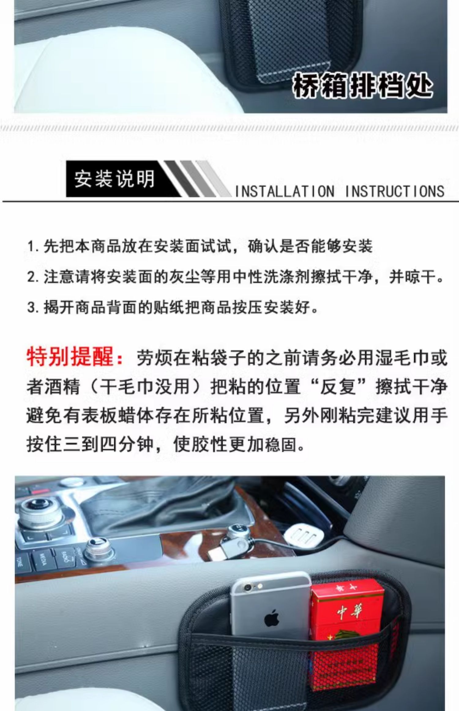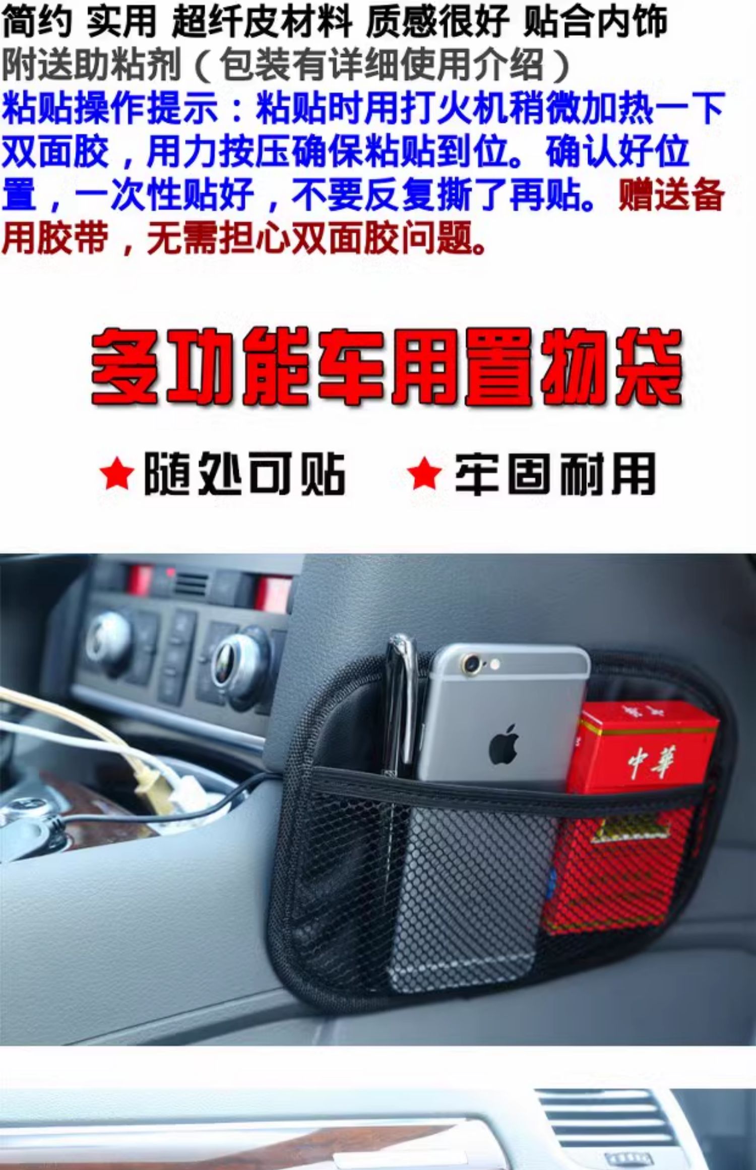 車用収納バッグ、車用収納ボックス、携帯電話バッグ、粘着式多機能メッシュバッグ、収納吊り下げバッグ