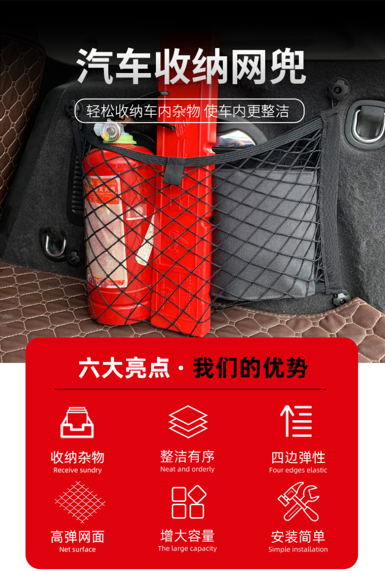 車の収納ネットバッグカー用品トランク収納バッグサイド収納ユニバーサル車の消火器ホルダー
