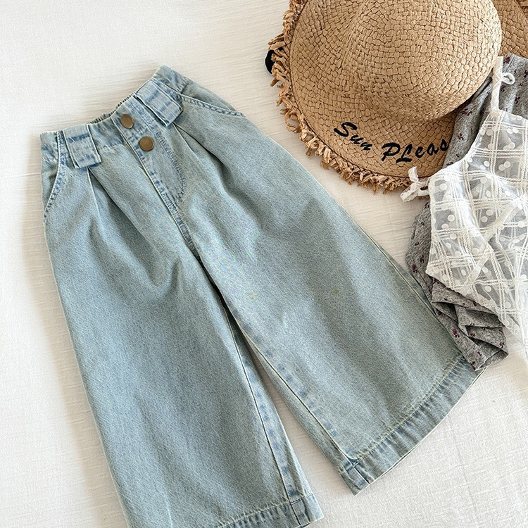 女の子の夏の薄いズボンの韓国版の新型のまっすぐな筒のジーパンの子供の洋風のカジュアルな百合の広い足のジーパン