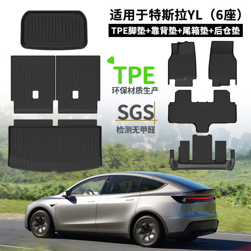 适用于25年特斯拉YL六座TPE脚垫尾箱靠背垫后仓垫碳纤纹星河毯