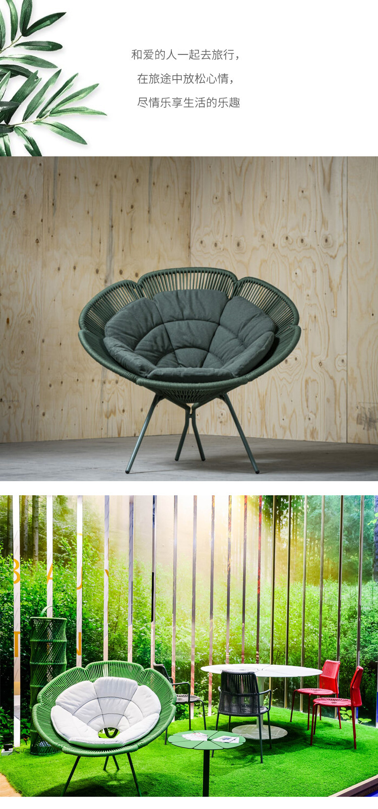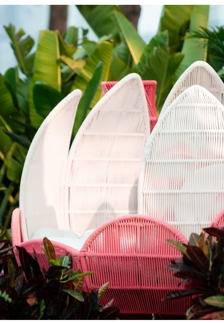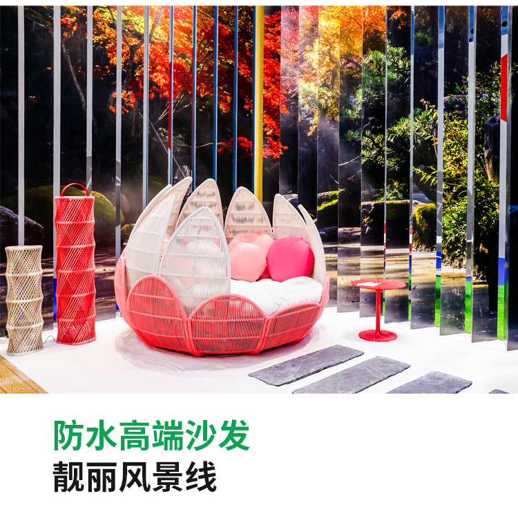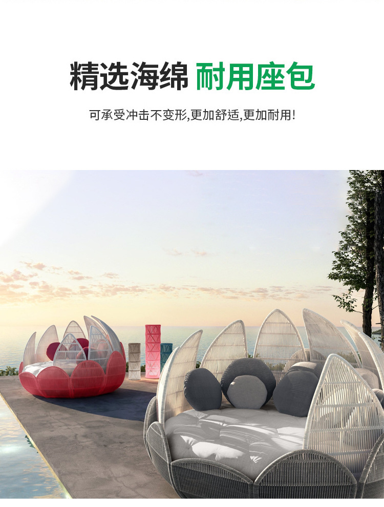 屋外籐ソファテーブルと椅子クリエイティブ花びら椅子蓮リクライニングベッド防水日焼け止め中庭ホテル籐椅子家具