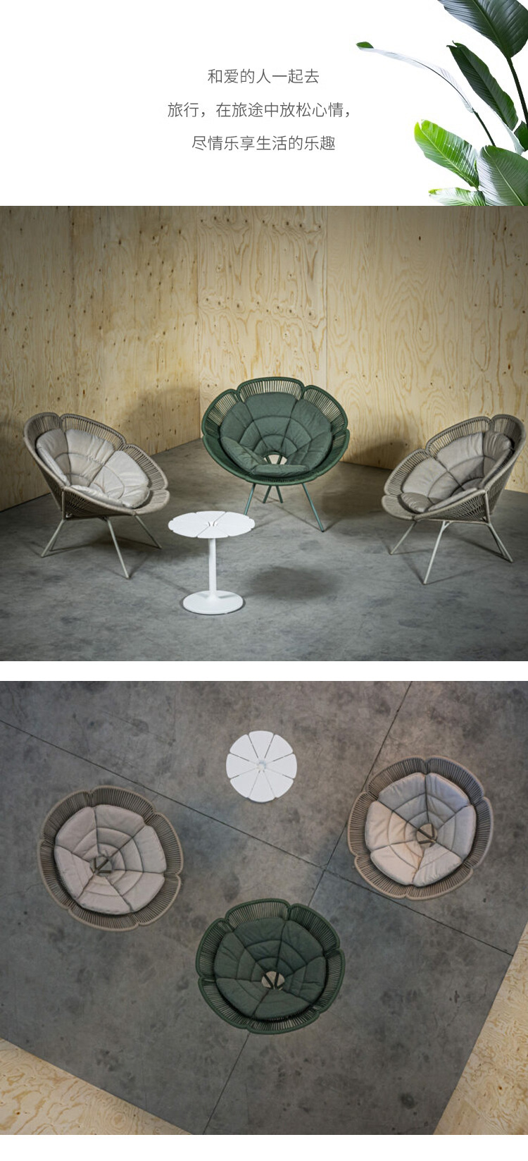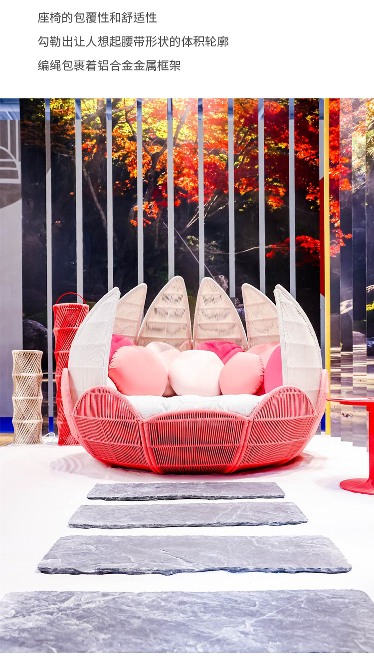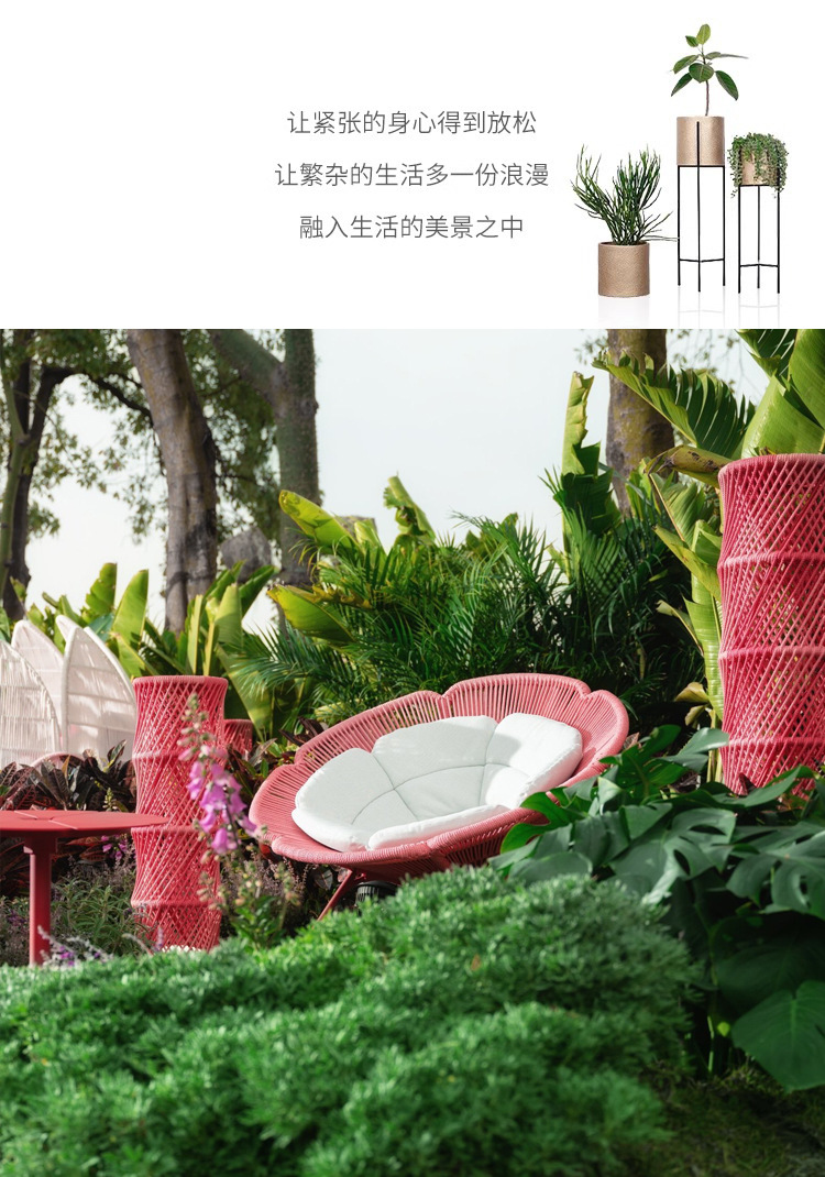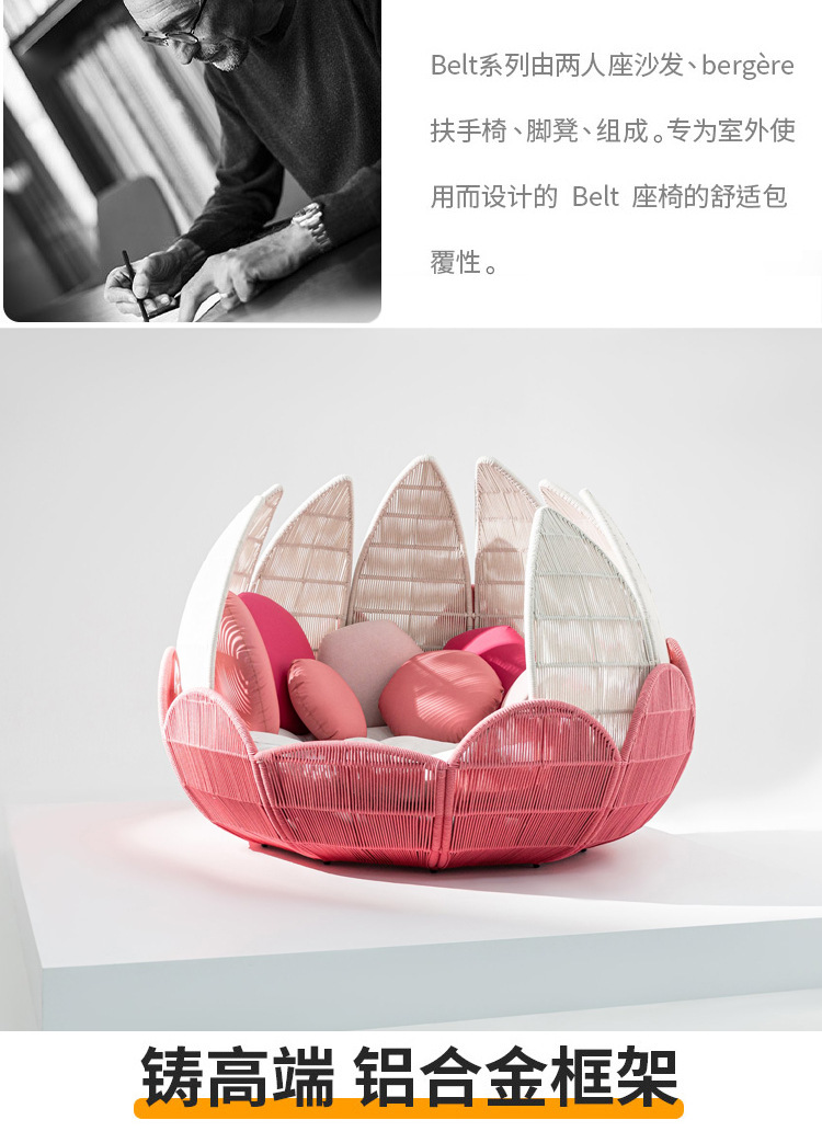 屋外籐ソファテーブルと椅子クリエイティブ花びら椅子蓮リクライニングベッド防水日焼け止め中庭ホテル籐椅子家具